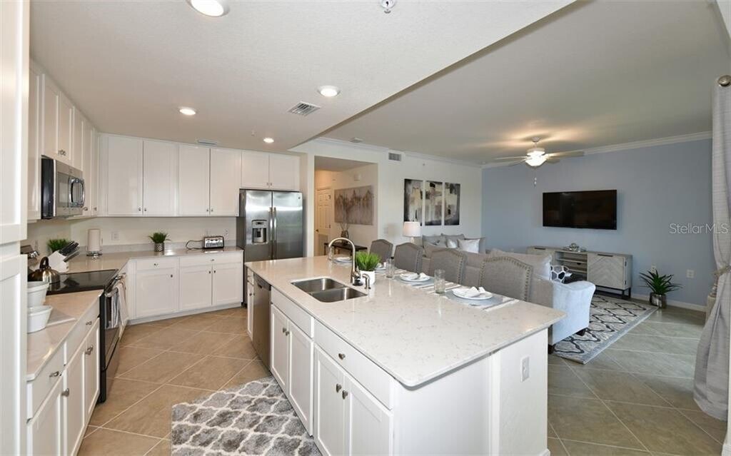 This condo is named "Endless Summer"! What a beautiful new 3rd Floor Condo available for you to book at Lakewood National located in Lakewood Ranch. This one-of-a-kind Arnold Palmer designed 36 Holes Golf Course is a real champion nearly 900-acre enclave set within the 17,500 acre an award-winning master planned community. This property offers 1,232 square feet of living space 2-bedroom & 2-bathroom. I am sure your family and friends will enjoy the spacious living room, and a sleek and stylish kitchen that flows through the dining room perfect for a family meal gathering. The condo offers elegant furniture and wall accent in the living and bedrooms. Everything in the condo is brand new, the condo includes a gorgeous gourmet kitchen with extended quartz countertops features white cabinets, along with casual dining with bay windows overlooking the golf and the lake while preparing your favorite meals. Gorgeous master suite with king size bed with accent walls and two nightstands and a chest with a mounted flat screen TV your privacy. The walk-in closet is very spacious, and it has an additional closet for linens, towels etc... The master Bathroom has a large walk-in shower and quartz countertops with white cabinets. The second bedroom has two twin beds, one nightstand and a chest. It also has an extra mounted TV for your convenience. You will notice when you enter the condo, the entrance table with a mirror and elegant decorations throughout the condo. Everything brand new. Wait to see the lanai, and what a view! you will have plenty of space to enjoy the golf and lake view from the lanai and spend time with your family seating a very comfortable bench and chairs. The condo is equipped with modern electronics, and a variety of options for your favorite TV movie channels. Also, for the guest convenience the condo is equipped with smart locks. The condo also offers a separate storage room perfect to keep your bicycles, golf equipment, or anything you don t want to store inside the condo. You ll enjoy and appreciate the beautiful sunrise from the lanai and This is a perfect place for you and your family to spend your unforgettable vacation. The beautiful Lakewood National amenities is up and running the brand-new amenities will offer you an exceptional resort lifestyle. The community amenities are open state-of-the-art fitness center, lighted clay tennis courts, casual poolside dining, full-service spa, and a beautiful restaurant. You can’t miss the resort style lagoon, beauty salon among many other things. You will find plenty of space to ride your bicycles and walk. Not to mention that Lakewood National is close proximity to the beautiful #1 rated beach in the USA called Siesta Key, Anna Maria Island is approximately 40 minutes, and you can’t forget to visit Longboat Keys. You don’t even need to leave the community to have a delicious meal, you can dine in the beautiful restaurant at the clubhouse or even join your friends at the Tiki bar for casual encountering. This is a perfect place for your vacation time! No pets allowed! *** LONGTERM AVAILABLE ***** Long term rental available. 6 months + 2 days up to 12 months with possibility to extend First Month & Last months rent Plus one-time fees (such as: application fees, HOA fees, pet fees, etc.) Plus Security deposit *** SHORT TERM AVAILABLE ****** Short term rental available. 30 days minimum up to 6 months + 2 days. Off season (April - November) High season (January -March) Mid Season (December) Plus one-time fees Plus refundable damage deposit Plus taxes (February 2026 already rented! Long term availability AFTER February 2026!)