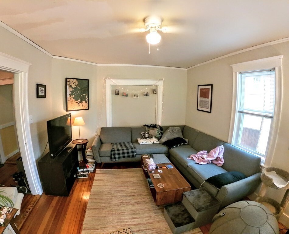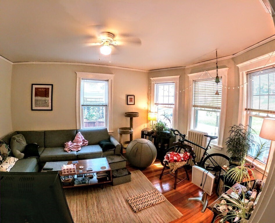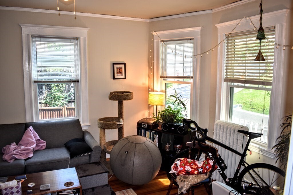HEART OF ROSLINDALE SQUARE...Four room 1+ bedroom! Less than a five minute walk to Rozzi Village shops, Commuter Rail, and restaurants. Light and bright, this unit has beautiful wood floors throughout. Large living room and Dining room with built in period hutch plus faux stained glass window. Eat in kitchen with large pantry, stainless fridge, stainless gas stove, and stainless dishwasher. Gas hot water radiator heat (2015) with insulated windows throughout. Ample street parking (no sticker required!). Owner will consider a cat. New porch (2017), fenced in yard, & basement with coin-op laundry. 1000ft from Roslindale Village including Commuter Rail, buses, restaurants, bakery, and supermarket. Quick access to Arnold Arboretum, Jamaica Plain, highways, Dedham's Legacy Place, & Costco.