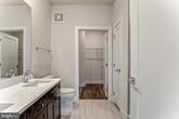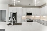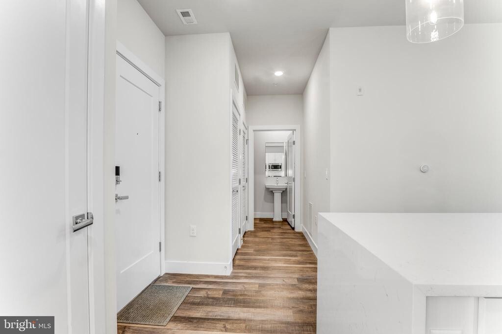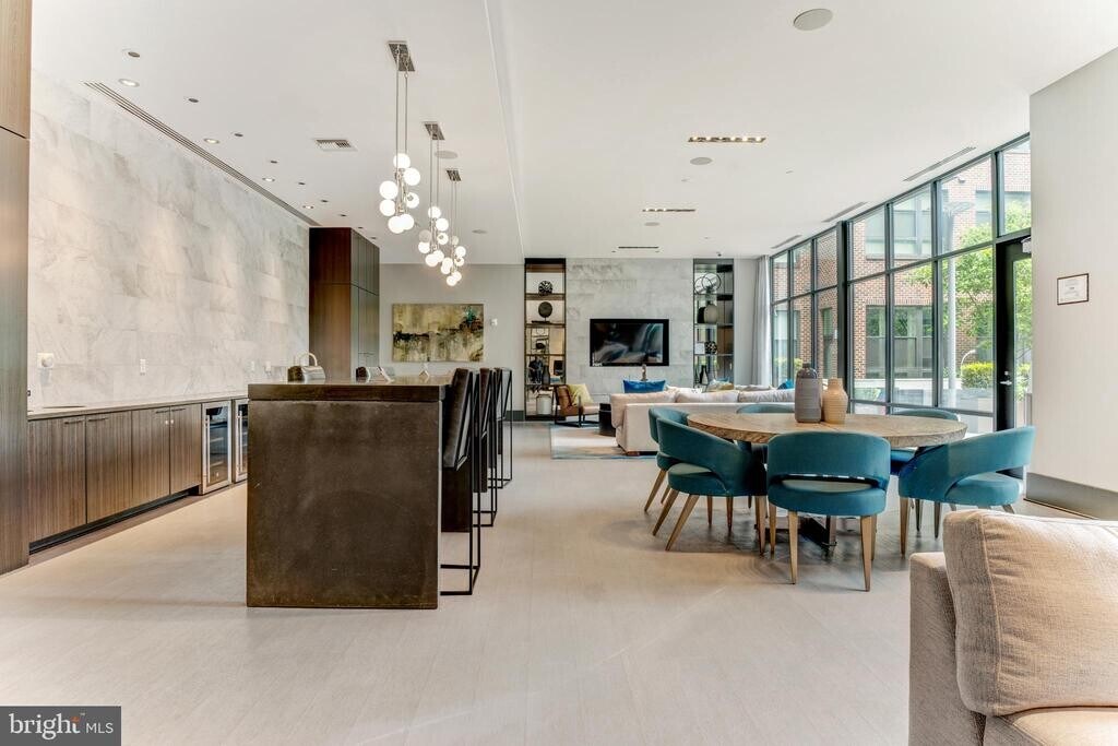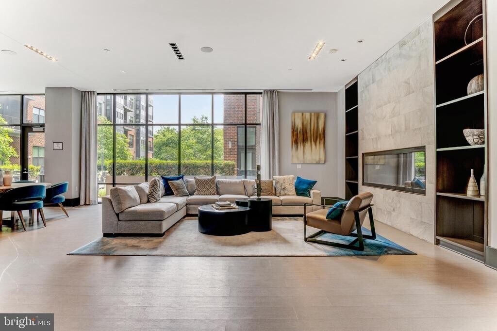 Urban elegance and practical comfort converge at 1761 Old Meadow Road #209—a stylish 2-bedroom, 1.5-bathroom condo in the heart of Tysons. Thoughtfully designed with high-end finishes, abundant natural light, and access to resort-style amenities, this residence pairs everyday ease with refined modern living. The main level welcomes with wide-plank hardwood floors, an open-concept layout, and large windows with custom blinds. The kitchen blends form and function with white Shaker-style cabinetry, quartz countertops, a waterfall island, white subway tile backsplash, and an LG stainless steel appliance suite—including French-door refrigerator, range, microwave, and dishwasher. A stainless farmhouse sink, under-cabinet lighting, and island pendant lights complete the space. The adjacent living and dining areas flow directly to the private balcony with composite decking, ideal for indoor-outdoor living. A stylish powder room, in-unit Electrolux washer/dryer, and utility closet with ProLine water heater add convenience. The spacious primary bedroom features a walk-in closet with built-ins and large windows. The en-suite bath offers a dual-sink vanity with quartz counters, a frameless walk-in shower with designer tile surround, and chrome fixtures. The secondary bedroom includes double-door closet storage and access to a hall bath with quartz vanity and tiled tub/shower combo. Enjoy a full suite of building amenities, including secured entry, Amazon locker mailroom, a resident lounge with fireplace and catering kitchen, a fitness center, rooftop park, outdoor terrace with grill stations, and landscaped walking paths. Close by are the Silver Line Metro, Capital One Center, Safeway Shopping Center, Tysons Corner, and major commuter routes—offering unmatched access to shopping, dining, fitness, and entertainment. This is connected, low-maintenance living at its finest.