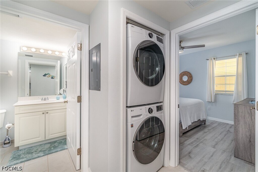 Enjoy the Florida lifestyle in this beautifully maintained 2-bedroom,2-bath condo in Cape Coral with gulf access. This bright and spacious unit features an open floor plan and comfortable living area that opens to a private screened lanai overlooking the water where you can enjoy your morning coffee or a glass of wine in the evening. Enjoy the convenience of in-unit laundry and a covered parking spot.