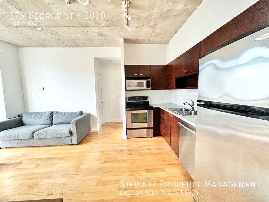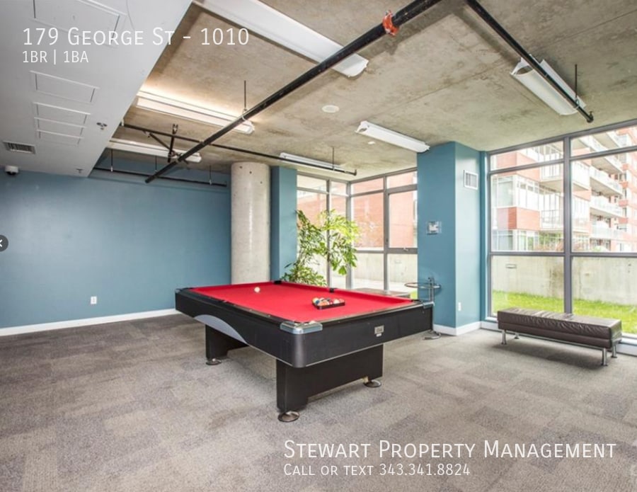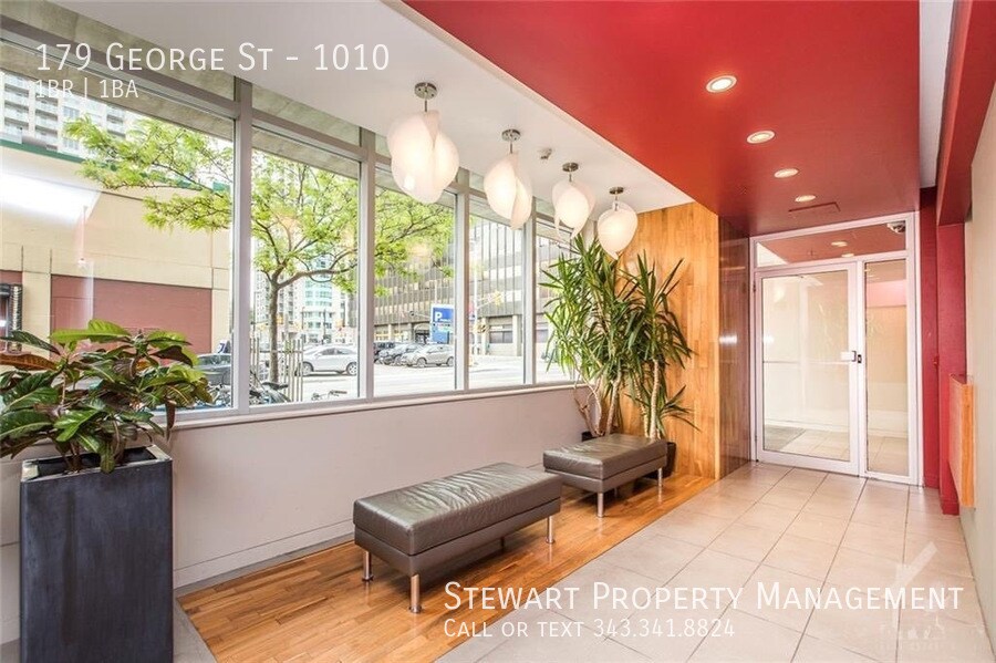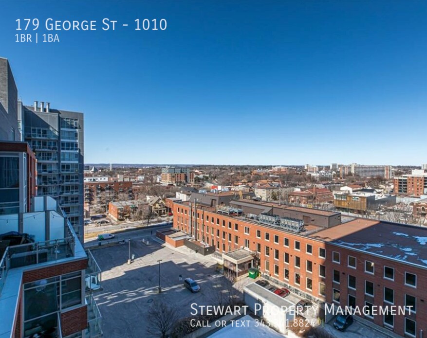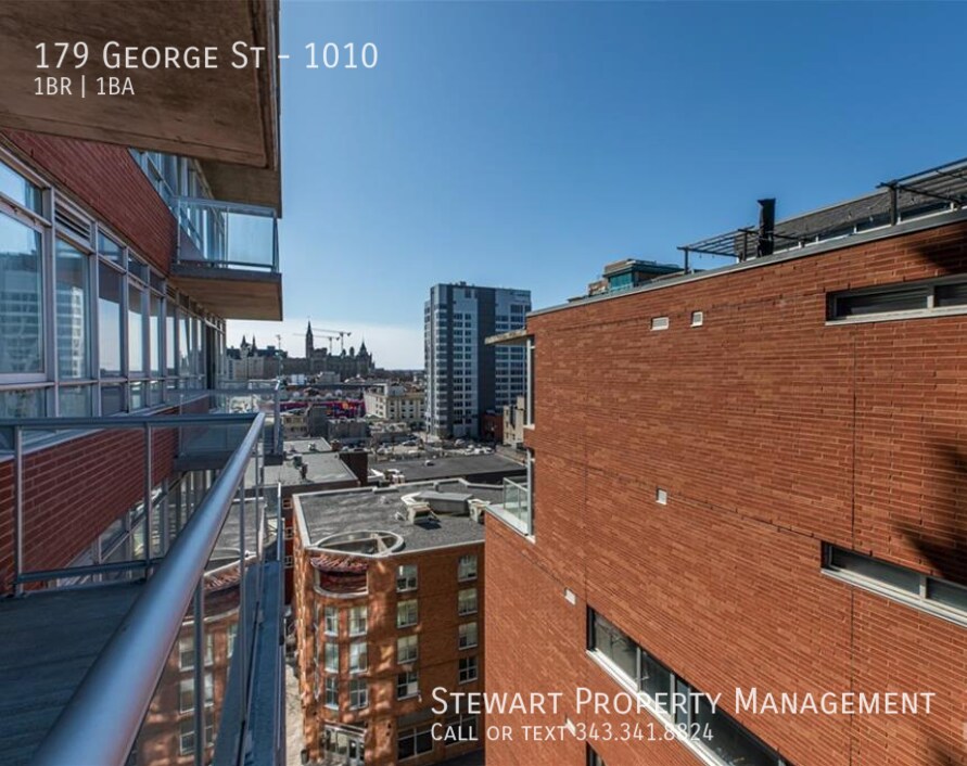 AVAILABLE JANUARY 1ST!! Welcome home to 179 George Street located in Ottawa's ByWard Market, one of the city's most vibrant and historic neighborhoods. This area is known for its lively atmosphere, rich cultural heritage, and a mix of residential, commercial, and entertainment spaces. Features: • 1 bedroom + DEN • 1 bathroom • Parking (extra $160/month) • Private Balcony (north facing 12' x 5') • In unit laundry • Storage locker • Custom window blinds • High quality finishes • ALL UTILITIES INCLUDED Welcome to this modern, impeccably designed condo in the heart of downtown, perfect for young professionals, investors, or those looking to downsize and enjoy maintenance-free living. This stylish unit features 1 bedroom + den, 1 bathroom, and high-quality finishes throughout. Location: • Nearby amenities (such as grocery stores, pharmacies and banks) • Countless schools and community centers within the area • Nearby to various recreational spaces such as parks and green spaces. • Walking distance to historic Byward Market • Minutes from Rideau Canal • Minutes from the University of Ottawa • Walking to Rideau LRT station Building amenities: • Exercise room • Outdoor terrace & BBQ • Party room Criteria: • All pets considered; small pets preferred • Non-smoking unit/premises • One year lease minimum • First and last month rent required This property is managed by Stewart Property Management