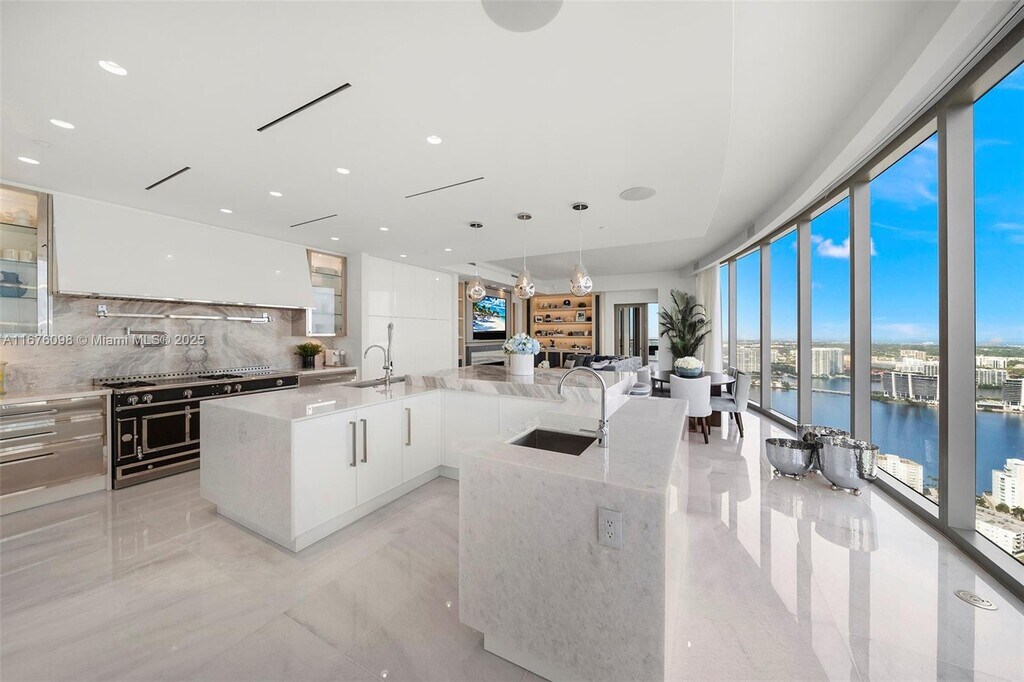 Spectacular flow-through residence with 4 bedrooms plus family room and 6.5 Baths, featuring a sleek interior design, unit has marble floors and an opulent onyx primary bath with steam shower. The chef’s kitchen boasts a La Cornue gas range, and three expansive terraces offer breathtaking views and a summer kitchen with grill. Optional Casa Fendi furnishings add to the elegance. Enjoy unrivaled amenities including a Rolls Royce house car, world-class spa and fitness center, daily breakfast, private cinema, F1 and golf simulators, cigar lounge, bowling, ice skating rink, trading room, and tech lounge. Outdoors, relax in three pools with FlowRider and waterslide, and savor five on-site restaurants, including Avra, Il Mulino, and Ke-Uh, plus pool and beach dining by Meze and Costa Grill.