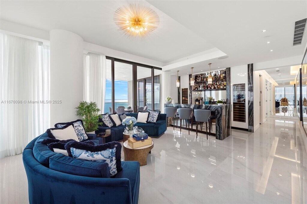 Welcome to Villa d'Este at The Estates at Acqualina. This spectacular Tower Suite is designed by world-renowned Argent of London and spans nearly 10,000sf of total space. Adorned with exceptional finishes like custom millwork, lavish marble and onyx stones, a chef’s kitchen, and Control4 technologies. Suitable for families and ideal for entertaining, its custom layout has a family room, bar/entertaining space, cinema, and vast storage in addition to its 6 bedrooms. Over 1600sf of balcony with jetted-lap pool, separate plunge pool, outdoor sauna, and summer kitchen. Offered turnkey with designer furnishings. Miami's premier lifestyle property with Rolls-Royce house cars, 5 world-class restaurants, 3 pools, daily breakfast, cinema, skating, bowling, F1 and sports simulators, and much more! Indulge in premier amenities: a Karl Lagerfeld-designed lobby, Rolls-Royce service, spa, fitness center, daily breakfast, cinema, game simulators, cigar lounge, bowling, an ice rink, trading room, tech lounge, and three pools with FlowRider and a waterslide. Enjoy five gourmet restaurants on-site: Avra, Il Mulino, KeUh, Meze, and Costa Grill. Embrace the pinnacle of luxury living.