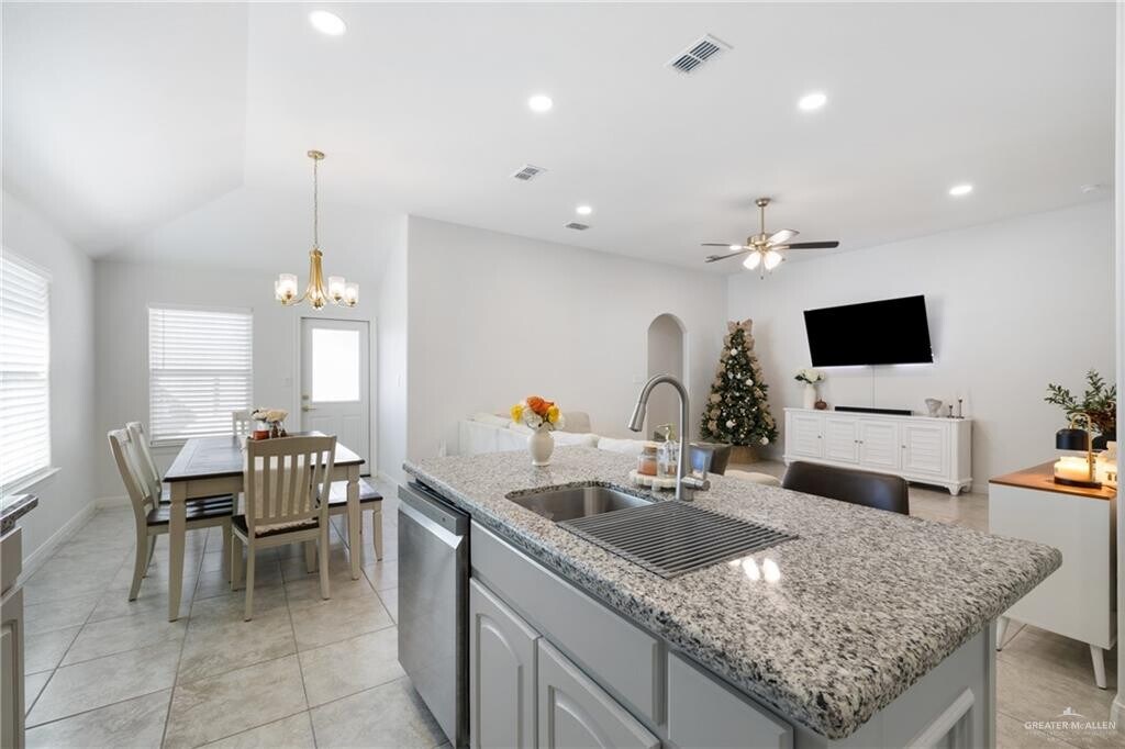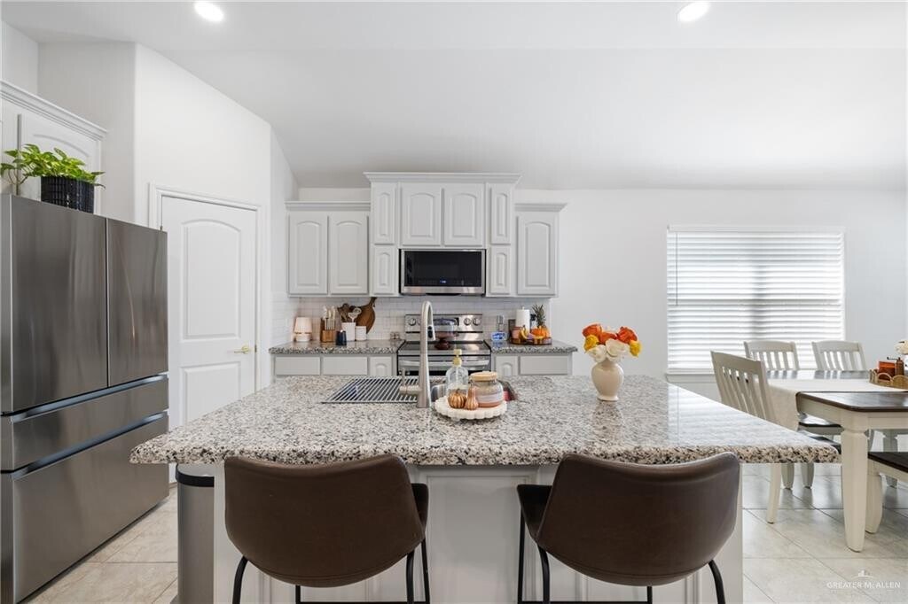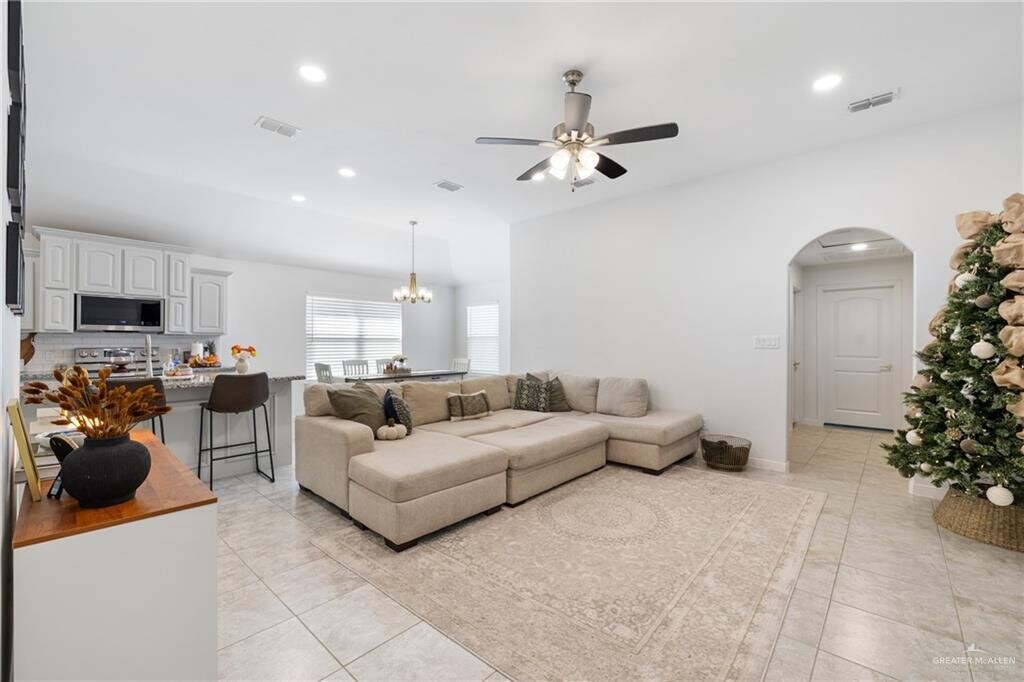 Beautiful new construction home built in 2024 located in a rapidly developing area of Hidalgo,Texas! This modern residence features 4 bedrooms and 2 bathrooms with an open-concept layout and high ceilings that create a bright and spacious atmosphere throughout. The functional floor plan offers a welcoming living area that flows seamlessly into the kitchen and dining space — perfect for family gatherings or entertaining guests. The large backyard provides plenty of room for outdoor activities,BBQs,or future additions like a pergola or pool. Ideally situated near schools,shopping,and dining,this home also offers quick access to international bridges,making it an excellent choice for commuters or frequent travelers. Located in a high-growth area of Hidalgo,this property combines comfort,style,and investment potential.