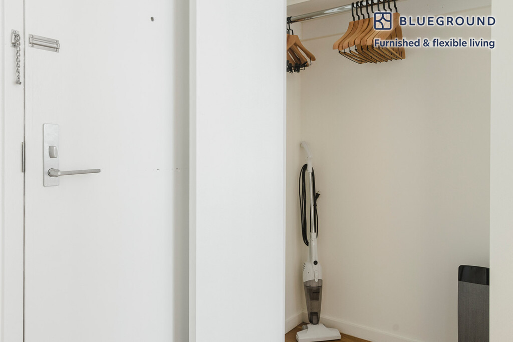 Show up and start living from day one in New York with this comfortable one bedroom Blueground apartment. You’ll love coming home to this thoughtfully furnished, beautifully designed, and fully equipped Diamond District home. (ID #NYC1643) The advertised rate of $4,580/month is the lowest available price, based on a 1 month(s) and 17 day(s) stay with a move-in date of December 20, 2025. If you’re looking for a 1-year stay, the rate is $6,110/month. Rates vary depending on the duration of stay, season, and other parameters. For exact pricing and additional pricing components, please visit our website and enter your desired move-in and move-out dates. The rate is applicable when billed upfront; it can be higher if billed in multiple payments. Brokers are welcome to reach out. Were you looking for an unfurnished lease? Try Blueground instead and upgrade from unfurnished to furnished living: - Furnished at rates comparable to unfurnished - No setup or furniture costs - save thousands - Move-in ready - save time, just bring your suitcase Designed with you in mind Gorgeous furniture, fully equipped kitchen, smart TV, and a premium wireless speaker are just a few of the amenities you’ll find inside this one bedroom apartment. Ideally located in New York, you’ll find a lot to love outside as well. When you’re ready to relax, you’ll be happy to discover every Blueground bedroom comes with superior quality mattresses, luxury linens, and cozy towels. We handle everything so you can simply show up and start living. This apartment also offers in-apartment laundry. Sleeping arrangements Queen Bed, 63in/160cm Amenities Building amenities unique to this one bedroom apartment include an on-site: - Doorman - Dryer - Elevator - Washing machine - Lounge - Pets allowed Arrival and ongoing support The entire apartment is yours to enjoy! Throughout your stay, you’ll have access to our Client Experience team through the Blueground App. You can schedule additional cleanings, submit maintenance requests, and view our neighborhood recommendations with just a few taps. We’ll share all details upon confirmation of your stay. Other things to note Building amenities may have an extra cost. This Blueground apartment has flexible lease options, allowing you to book it for one month, a year, or more. Pets are welcome, though weight limits and breed restrictions apply and may incur fees. Brokes CYOF. We take great pride in ensuring every photo displayed is shot in our own units with our actual furnishings. That said, we regularly refresh our decor and furniture arrangement, which may differ from what’s pictured. [SI]