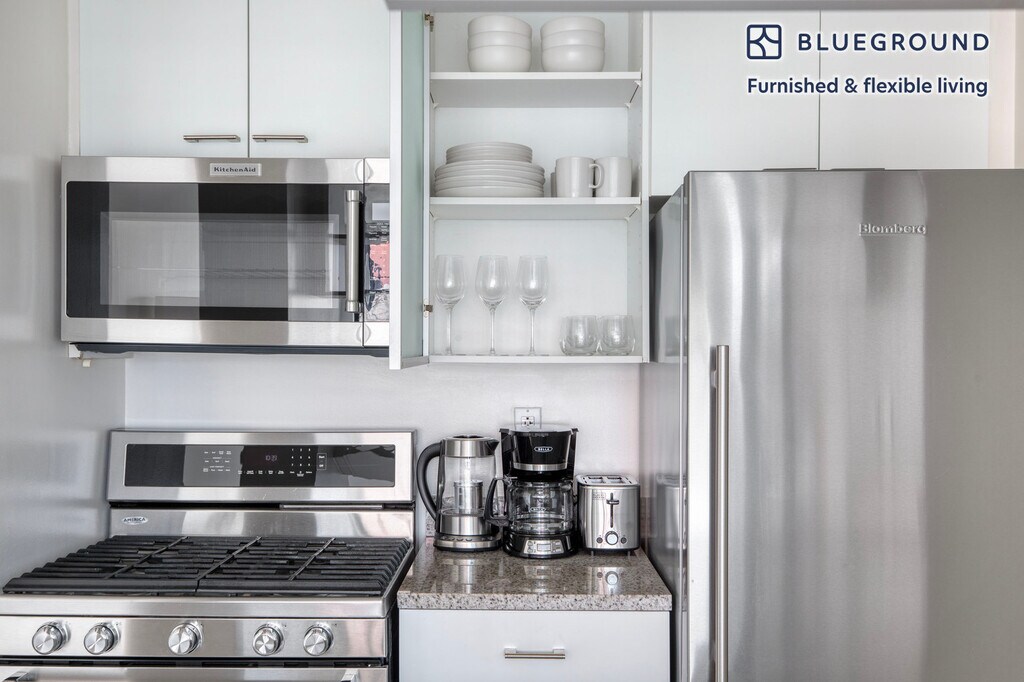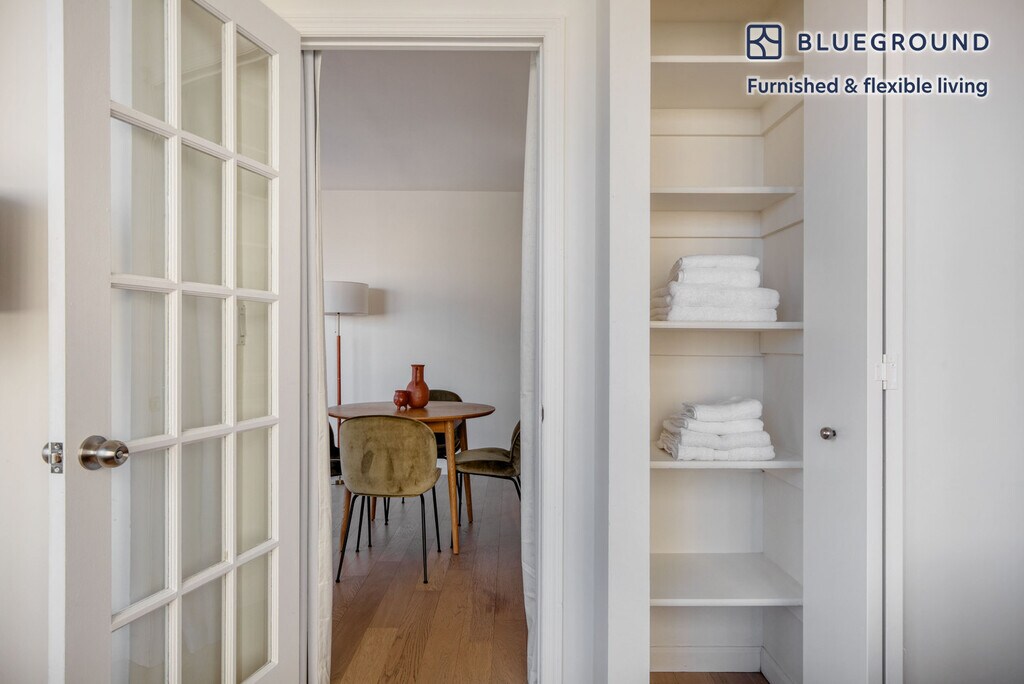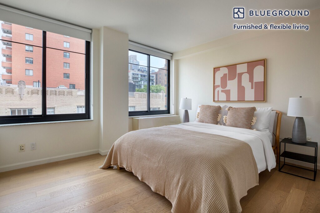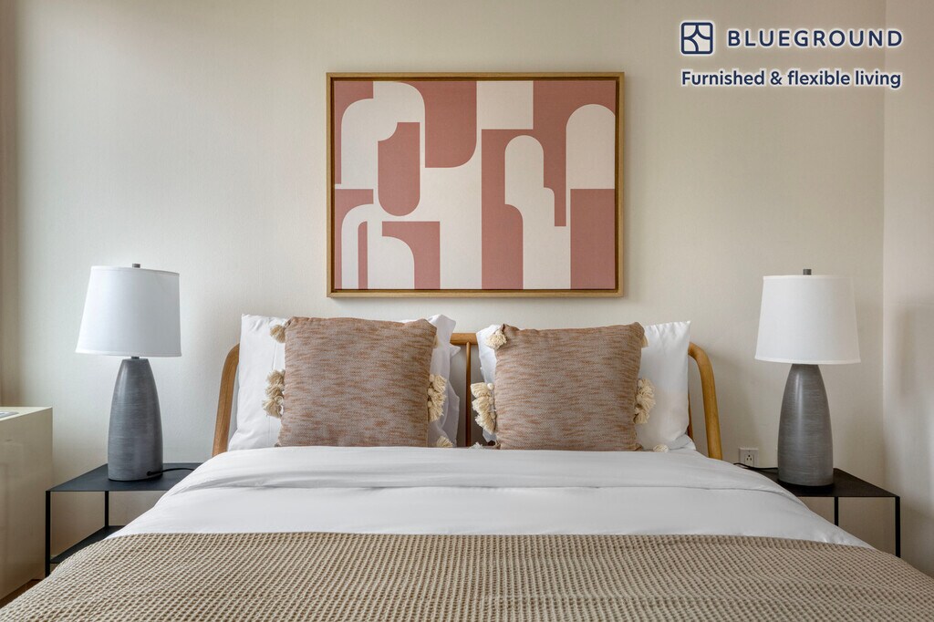 Feel at home wherever you choose to live with Blueground. You’ll love this spacious Chelsea furnished two bedroom apartment with its modern decor, fully equipped kitchen, and roomy living room with great balcony views. Ideally located, you’re close to all the best that New York has to offer! (ID #NYC1201) The advertised rate of $11,430/month is the lowest available price, based on a 11 month(s) and 29 day(s) stay with a move-in date of February 27, 2026. Rates vary depending on the duration of stay, season, and other parameters. For exact pricing and additional pricing components, please visit our website and enter your desired move-in and move-out dates. The rate is applicable when billed upfront; it can be higher if billed in multiple payments. Brokers are welcome to reach out. Were you looking for an unfurnished lease? Try Blueground instead and upgrade from unfurnished to furnished living: - Furnished at rates comparable to unfurnished - No setup or furniture costs - save thousands - Move-in ready - save time, just bring your suitcase Designed with you in mind Thoughtfully designed with bespoke finishes, modern furnishings, and a fully equipped kitchen, you’ll enjoy that “I’m home” feeling with this Blueground apartment. Whether you’re lounging in your sophisticated living room streaming the latest and greatest entertainment on the smart TV or premium wireless speaker, or getting some well-earned rest on the superior quality mattress with luxury linens, you’ll fall in love with everything this Chelsea apartment has to offer. This apartment also offers in-apartment laundry. Sleeping arrangements Queen Bed, 63in/160cm Double Bed, 55in/140cm Amenities Building amenities unique to this two bedroom apartment include an on-site: - BBQ Area - Doorman - Dryer - Elevator - Washing machine - Lounge - Pets allowed Arrival and ongoing support The entire apartment is yours to enjoy! Throughout your stay, you’ll have access to our Client Experience team through the Blueground App. You can schedule additional cleanings, submit maintenance requests, and view our neighborhood recommendations with just a few taps. We’ll share all details upon confirmation of your stay. Ideally Located This furnished apartment is located in Chelsea, one of the city’s trendiest neighborhoods. Considered an artistic and creative center, there are over 200 galleries to discover. Ranging from classical to experimental art, there is something for every taste. Take a stroll through the High Line park for a unique perspective and a breath of fresh air. What used to be a railroad, now provides stunning views of Manhattan’s architecture. This area is also known for its various fine dining options and hip nightlife. From Chelsea, JFK Airport is just 30 minutes away by car. Other things to note Building amenities may have an extra cost. This Blueground apartment has flexible lease options, allowing you to book it for one month, a year, or more. Pets are welcome, though weight limits and breed restrictions apply and may incur fees. Brokes CYOF. We take great pride in ensuring every photo displayed is shot in our own units with our actual furnishings. That said, we regularly refresh our decor and furniture arrangement, which may differ from what’s pictured. [SI]