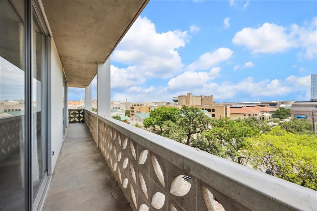 RARE - FULLY FURNISHED LISTING– FULLY RENOVATED & READY TO GO! Step into effortless midcentury-modern living with this beautifully updated 2-bedroom, 2-bath condo at the historic Cambridge Tower—Austin’s first landmark residential high-rise, ideally located across from the UT campus in the heart of the museum district. Unit 11A has undergone a top-to-bottom transformation, offering a stylish, turnkey home with all the heavy lifting already done. Key upgrades include: Three new sliding glass balcony doors for improved efficiency and access to the full-length west-facing balcony Reimagined open kitchen—wall removed to create open flow to living/dining areas All-new custom cabinetry with smart storage, quartz counters, and stainless steel appliances Built-in open shelving in kitchen and dining, plus elegant glass-front display cabinets Both bathrooms completely remodeled, including new tile, showers/tub, sinks, toilets, fixtures, and medicine cabinets Primary suite upgrades: built-in desk and shelving with folding doors, plus custom inset space for armoire Polished concrete floors throughout and fresh paint for a clean, modern finish New recessed lighting, ceiling fans, and an upgraded AC unit (2011) for year-round comfort Comes with refrigerator and a washer/dryer combo unit conveniently located in the kitchen Bonus: the kitchen includes a rare private hallway entrance—perfect for quick access or deliveries. Enjoy stunning west-facing views and the timeless charm of Cambridge Tower’s breeze block balconies, combined with the convenience of extensive building amenities: a rooftop terrace, heated pool and spa, fitness room, concierge, 24-hour security, and more. HOA covers all utilities, internet, cable, and reserved garage parking. Unit 11A delivers the perfect blend of vintage architecture and modern functionality in one of Austin’s most desirable, walkable neighborhoods.