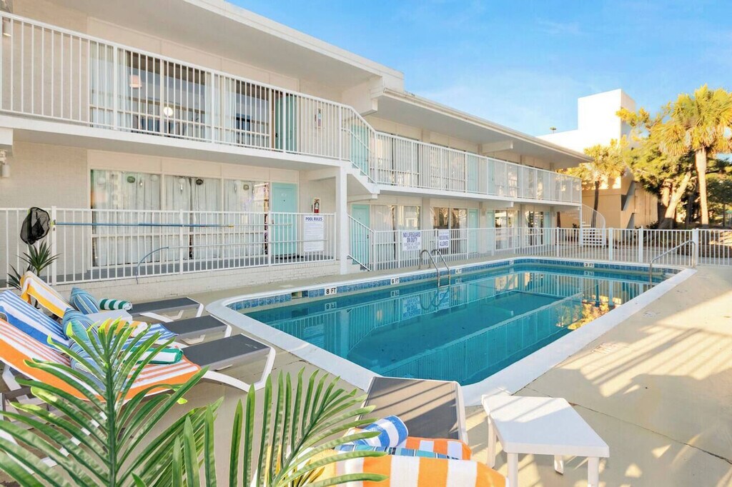 The advertised rate of $3,362/month is the lowest available price, based on a 1 month(s) stay with a move-in date of April 10, 2026. Rates vary depending on the duration of stay, season, and other parameters. For exact pricing and additional pricing components, please visit our website and enter your desired move-in and move-out dates. The rate is applicable when billed upfront; it can be higher if billed in multiple payments. Feel at home in this comfortable 1-bedroom suite, perfect for families or small groups seeking extra space and convenience. The suite includes a full kitchen equipped with a full-size refrigerator, stove, oven, microwave, and basic cookware, ideal for preparing meals or dining in during your stay. A private bathroom provides added comfort and convenience. Additional amenities include smart TVs, air conditioning, and high-speed Wi-Fi (100+ Mbps), making the suite well suited for remote work, streaming, or staying connected. Guests also enjoy access to Fin’s Inn shared amenities, including the seasonal outdoor pool and the on-site game room with arcade games and foosball. Located just two blocks from the beach. This 1-bedroom suite features two queen beds in a private bedroom and a sofa bed in the living area, comfortably accommodating up to 6 guests. [SI]