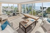 Welcome to Coronado beachfront living at its finest. Experience truly spectacular views of the Pacific Ocean,breathtaking vistas of San Diego skyline and Glorietta Bay. This premier private corner unit features exceptionally light and bright open floor plan with large outdoor patio. This lovely unit has one king size bed in the primary bedroom with large walk in closet and private bathroom. The guest bedroom has two twin size beds. The second bathroom has a washer and dryer. This unit is newly renovated and comes completly stocked - even down to the beach chairs! This residence includes housekepping services bi-monthly. The El Encanto Tower has been recently renovated and has the convenience of a 24/7 front desk staff. At The Coronado Shores guests have access to 8 tennis courts,4 pools and work out facility. Unit comes with 1 inside parking space. MLS# 250021404