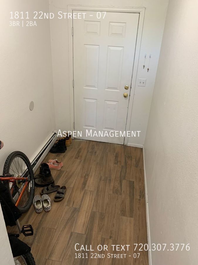 Lease Charges: Charge type Amount Fixed or Variable Description Recipient Base Rent $3,815.00 Fixed Monthly Rent Owner Trash Service Variable Fixed Trash removal Utility Utility Charge Variable Utility Utility Utility Admin Fee $20-$25 Administrative expense Broker Lease Processing Fee $400.00 Fixed Admin Fee (initial walk through, portal, texting, bank fees, file storage, software, administrative, move-out walk through) Broker Security Deposit (Mandatory) $3,818 Deposit for potential Tenant caused damages Broker in Trust Parking (Optional) $25.00 Cost for use of parking lot Owner Pet Rent (Optional) $57.00 Rent for occupancy by a pet Owner Storage (Optional) N/A Total $8,055 This three bedroom two bath apartment has tons of charm! Wonderfully unique apartment in an unbeatable location with free on-site parking. Ample living space, on-site laundry, and available storage. Private Balcony! -Deposit equal to one months rent -Tenant pays water, sewer, trash, electric, and gas -Pets Allowed -Laundry on-site Boulder RHL-0007177 Portable Tenant Screening Reports (PTSR): 1) Applicant has the right to provide Aspen Management with a PTSR that is not more than 30 days old, as defined in § 38-12-902(2.5), Colorado Revised Statutes; and 2) if Applicant provides Aspen Management with a PTSR, Aspen Management is prohibited from: a) charging Applicant a rental application fee; or b) charging Applicant a fee for Aspen Management to access or use the PTSR. If Applicant provides Aspen Management with a PTSR: a) the PTSR must be available to Aspen Management by a consumer reporting agency/third-party website that regularly engages in the business of providing consumer reports; 2) the PTSR must comply with all state and federal laws pertaining to use and disclosure of information contained in a consumer report by a consumer reporting agency; and c) Applicant certifies that there has not been a material change in the information in the PTSR, including the Applicant’s name, address, bankruptcy status, criminal history, or eviction history, since the PTSR was generated.