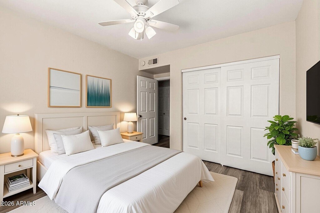 Coming soon: Beautiful 3 bedroom/ 2 Full bathroom, poolside condo at Lakeshore at Andersen Springs, a gated community in the heart of Chandler. This beautiful condo features new gray quartz counter tops in kitchen with farm sink, refinished white cabinets. New white quarts counter tops in both bathrooms. New paint throughout. Includes refrigerator, washer and dryer and ceiling fans. Relax on your covered patio overlooking the pool or take a few steps and enjoy the lake view! The community features 3 pools and spa, fitness center, tennis/pickle ball courts and a beautiful clubhouse. Get to know your neighbors at any of the wine socials, movie nights or other weekend events. You cannot beat the location close to the 101 and the 202. Only two minutes from Chandler Regional Hospital, Desert Samaritan Hospital and Honeywell. Lots of shopping and restaurants nearby. Walk to Sprouts, Pita Jungle, Valley Luna, Pestos Italian, with Fry's across the street. Refundable deposits: $1950 Security, $300 cleaning, $300 Pet. Non-Refundable Fees: $150 Admin, Application is free, all occupants, 18 and older must complete an application. PetScreening is $30 per pet, free for Assistive Animals, Applications and Rental and Pet Qualifications at Washer/Dryer In Unit Washer/Dyer In Unit