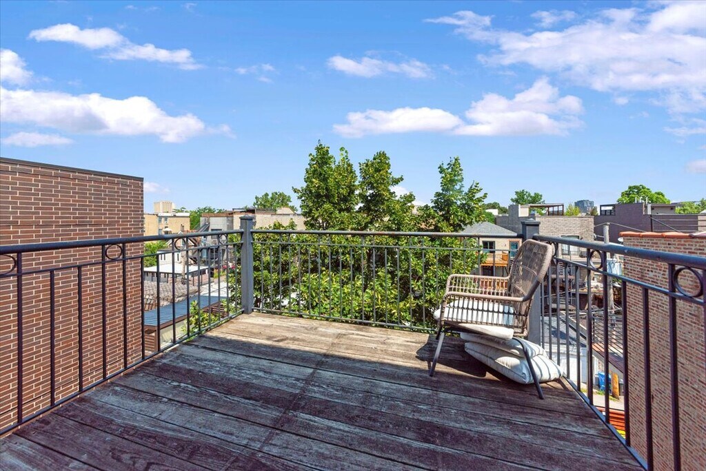 Come see this amazing top-floor 2 bedroom/2 Bath unit in East Village on a quiet, tree-lined street. Tons of natural light w/ large windows and beautiful park/city views. Like being outside? The unit features two balconies and a private rooftop deck! Dramatic vaulted ceilings, a large gourmet kitchen with stainless steel appliances, and granite countertops. The unit also has a fireplace and an in-unit washer and dryer. One garage parking space included. Non-refundable move-in fee in place of a security deposit. Sorry, no pets! Steps to restaurants and nightlife on Division and Chicago, boutiques, Division Blue Line, grocery stores, parks, and all that West Town has to offer!