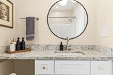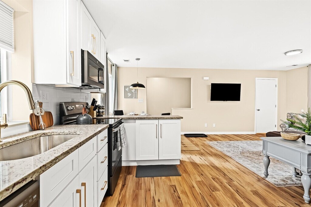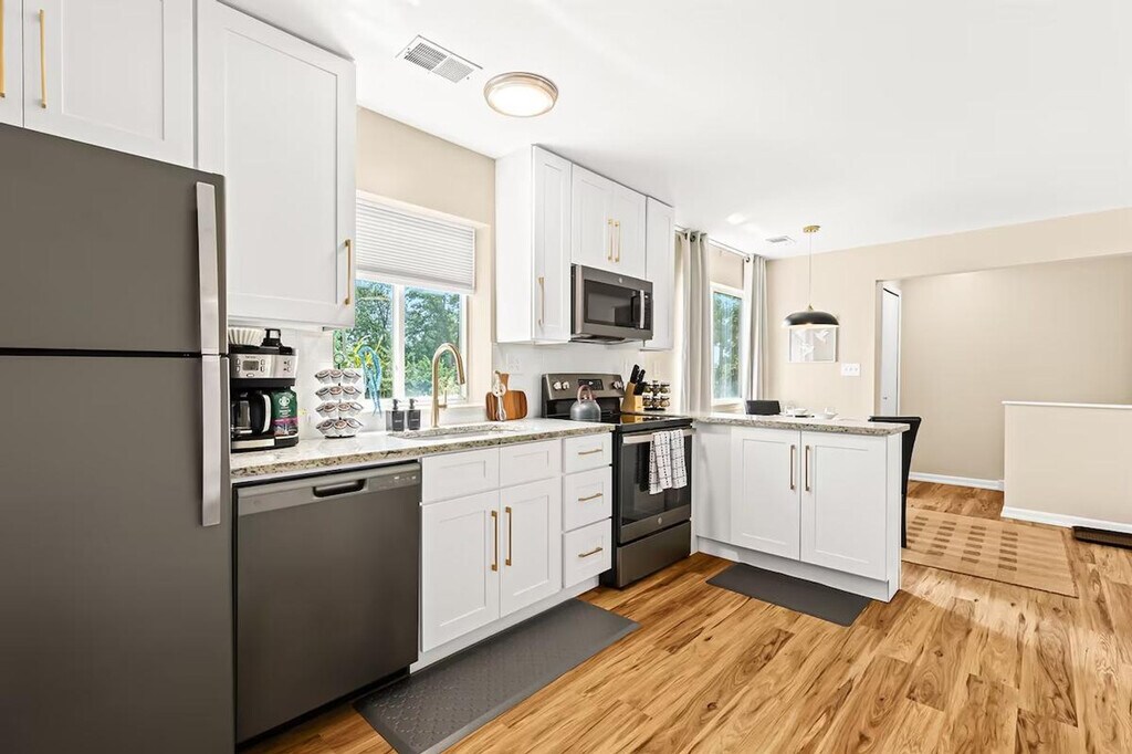 Unwind and feel at home in this roomy, cozy, and newly remodeled 1-bedroom apartment, conveniently situated in the secure and tranquil community of Roseville. This location is perfect for those traveling to the Detroit area, with access to the 696 and i94 expressways, plenty of restaurants and bars, shopping, and stores within 1 mile. Welcome to the newly renovated, spacious apartment, where you can experience the peaceful ambiance of an inviting Roseville retreat, surrounded by mature trees and privacy. The open concept living area allows you to relax, watch a movie, prepare your favorite meals, and enjoy memorable evenings. The kitchen features granite countertops and modern cooking appliances, making meal preparation effortless and fun. The dining table comfortably seats two, and the living room offers a comfy sofa, a 55" Smart TV with Roku, and cozy accent chairs. This pet-friendly home welcomes your registered pets with a $150 fee per pet. Non-approved pets will incur a $1000 fine. An EV charger is available for your convenience. Free parking is offered in the parking area behind the house. Roseville, MI is centrally located within Macomb County and offers convenient access throughout Metro Detroit. This location is minutes away from Macomb Mall and Macomb Community College, and only a half-mile from the 696 and i94 expressways. Quick access to shopping, restaurants, and entertainment is available off Gratiot Ave, and it's a short drive to Lake St. Clair and Metro Parkway Beach. The property is tucked away off the main road, surrounded by mature trees and greenery. There are security cameras surrounding the exterior of the property, including a Ring doorbell with a camera at the front door for safety. These only monitor the exterior entryway and are active 24/7, ensuring your privacy inside. Quiet hours are from 9 PM to 8 AM daily. Any noise complaints will incur a $250 fine. Smoking is only allowed outside, with a $1000 fine for smoking inside. A $250 fine will be charged if debris is left behind after your stay. Check-out time is 11 AM, with a $250 fee for late check-out after 11:15 AM. Moving furniture will result in a $250 fine. An excessive cleaning fee of up to $250 may apply for dirt, mud, or stains on floors or rugs. The apartment features fast Wi-Fi, making it ideal for remote work. A laptop computer is not included. [SI]