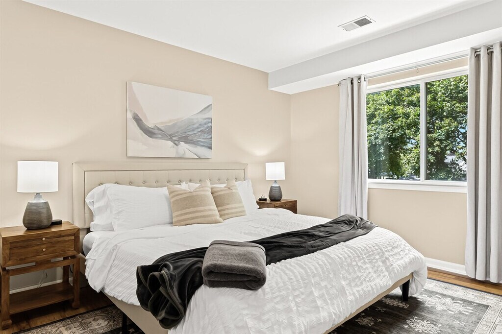 Unwind and feel at home in this roomy, cozy, and recently remodeled 1-bedroom apartment located on the 2nd floor in the secure and tranquil community of Roseville. Conveniently situated within 1 mile of the 696 and i94 expressways, this location offers easy access to plenty of restaurants, bars, shopping, and stores, making it perfect for those traveling to the Detroit area. Welcome to the newly renovated, spacious apartment, where you can experience the peaceful ambiance of an inviting Roseville retreat, surrounded by mature trees and privacy. The open-concept living area allows you to relax, watch a movie, prepare your favorite meals, and enjoy memorable evenings. Step out to the shared backyard to catch a breath of fresh air and enjoy the lush grass. The apartment features a king-size bed, central heat and AC, private in-unit laundry, fast Wi-Fi, a Smart TV, and a fully stocked kitchen with modern appliances. The apartment offers an EV charger for your convenience. Free parking is available in the parking area behind the house. Roseville, MI is centrally located within Macomb County, providing convenient access to Metro Detroit. Minutes away from Macomb Mall and Macomb Community College, the apartment is only a 1/2 mile from the 696 and i94 expressways, offering quick routes North, South, and West. Situated off Gratiot Ave, it provides quick access to shopping, restaurants, and entertainment, and is a short drive to Lake St. Clair and Metro Parkway Beach. The property is tucked away off the main road, surrounded by mature trees and greenery. The apartment is not pet-friendly, and non-approved pets will incur a $1000 fine. Smoking is only allowed outside, with a $1000 fine for smoking inside the unit. Quiet hours are from 9 PM to 8 AM daily, and noise complaints will result in a $250 fine. A $250 fee will be charged for checking out after 11:15 AM, moving furniture, or excessive cleaning due to dirt, mud, or stains. Security cameras monitor the exterior of the property, and a Ring doorbell with a camera is installed at the front door for safety, ensuring your privacy throughout your stay. [SI]