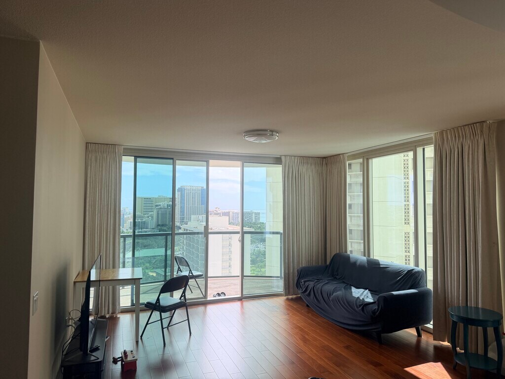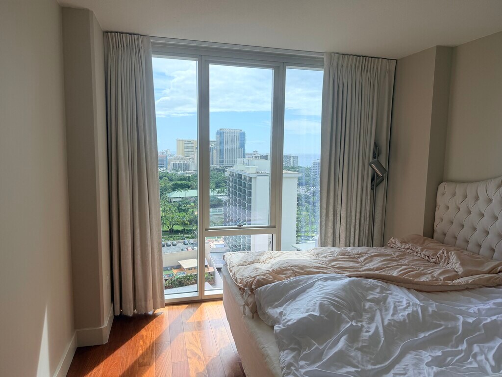 Prepping finally finished as of Jan 11. Ready to show. Experience this 2bd/2ba/1pk, 25th floor unit with an open-air lanai offering mountain, Ala Wai, and city views. Built in 2009, this luxury Waikiki building features newly renovated amenities: fitness center, resort-style pool and jacuzzi, cabanas, BBQs, recreation area, party room, concierge, and 24-hour security. Walk to nearby restaurants and shops. Unit includes Viking kitchen appliances, floor-to-ceiling windows, wood floors in living areas, carpeted bedrooms, central AC, and large closets. Utilities included: water, basic cable, internet and sewer,. Tenant pays for electricity and renter's insurance and any other incidentals such as premium cable channels. NO Smoking, and sorry--NO Pets. Can be UNFURNISHED as well.