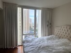 One of the best ocean views units in the building. 270 degree view of Waikiki, ocean, and diamond head from the living room. Both bedrooms have ocean views. 1,216 sq ft interior plus 88 sq ft lanai. Luxury appliances including Viking stove and oven, over-the-range microwave, dishwasher, and Miele refrigerator. High end water filter system Hardwood flooring throughout the unit (except tiles in the bathrooms). Split bathtub and shower in the master suite. Luxury building and resort style amenities 1 attached gated-garage parking included in the rent! Short term rental (1 month or longer) is allowed but subject to availability and extra charge