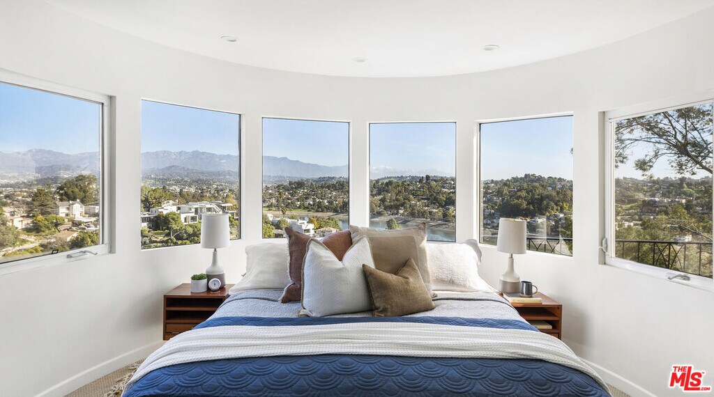 Escape the hustle and bustle of city life and experience true peace and tranquility in this stunning 3 bedroom, 3 bath home perched on a quiet street above the Silver Lake Reservoir. With its wall of windows and airy, open floor plan, this home is flooded with natural light and offers breathtaking panoramic views from nearly every room. Step inside and you'll immediately be struck by the sweeping views and the bright, welcoming atmosphere. The spacious living area is perfect for entertaining or relaxing, while the adjacent dining area offers ample space for hosting dinner parties or enjoying casual meals with family and friends. The primary bedroom is a true luxury retreat, featuring a spa-like en-suite bath and large windows that provide stunning views of the reservoir and the surrounding hills. A decorative fireplace, seating area, walk-in closet, and private balcony complete your oasis in the sky. Two additional spacious bedrooms offer comfortable accommodations for guests or family members, and can easily be converted into a home office or creative space to suit your needs. Outside, you'll find two private balconies and a huge deck with breathtaking views that's perfect for enjoying morning coffee, soaking up the sun in the afternoon, or enjoying dinner under the night sky. You'll feel like you're on top of the world every time you come home. This incredible home offers the ultimate in Southern California living - a peaceful retreat above the hustle and bustle of the city, yet just minutes away from the vibrant dining, shopping, and entertainment options of Silver Lake and beyond. Don't miss out on this rare opportunity to experience the best that this beautiful neighborhood has to offer. MLS# 26656351
