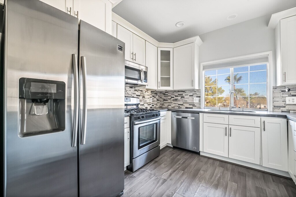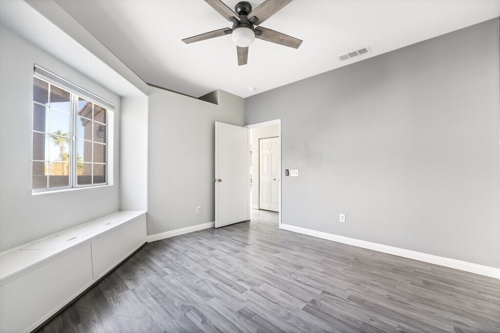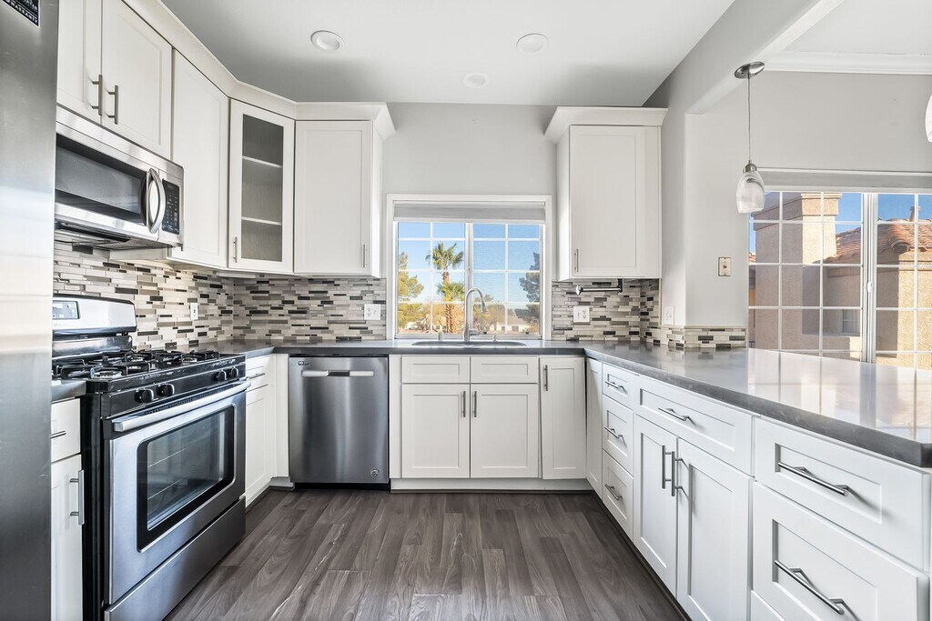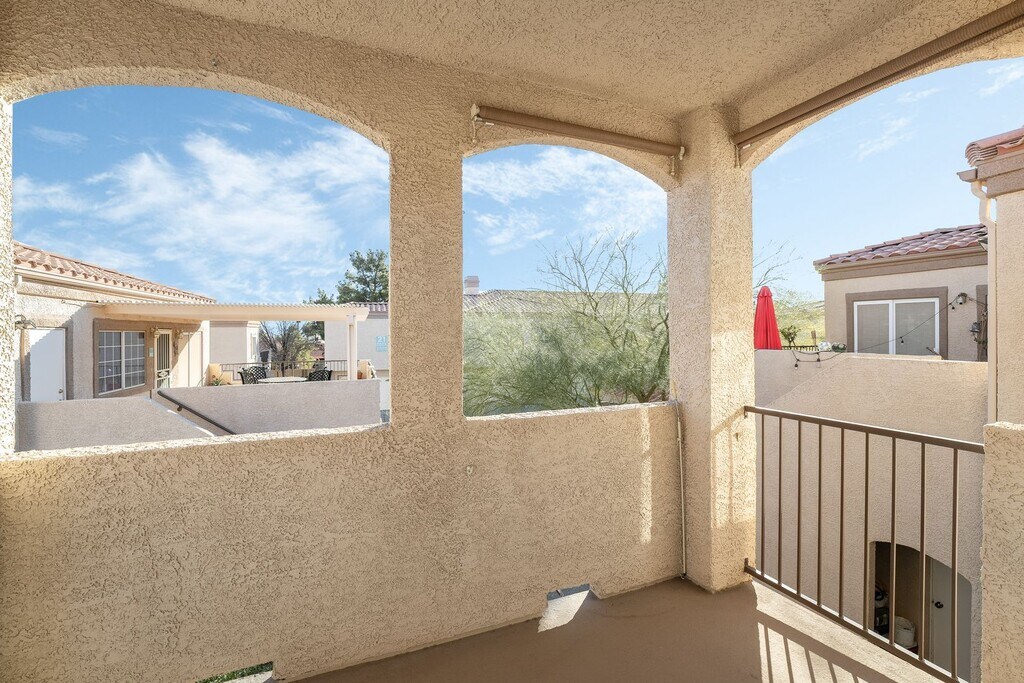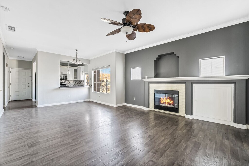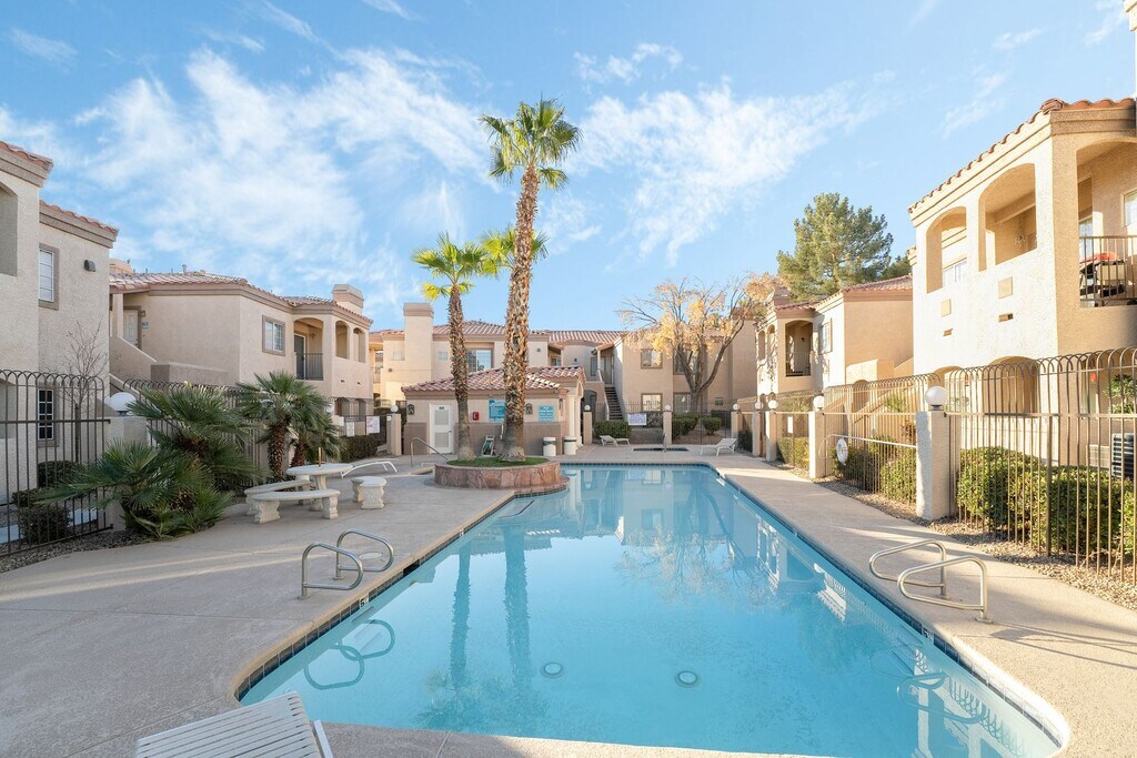 Beautifully recently remodeled gem in the heart of Green Valley! Quiet 2 bed/2 bath/2 car garage unit located on the 2nd floor. This serene community includes 2 pools, a clubhouse, community facilities and ample guest parking. Upgrades include new plank flooring, kitchen cabinets, beautiful counter tops, updated appliances, glass tile backsplash, crown molding and upgraded bathrooms. Living room has a fireplace with custom tile surround. Relaxing private covered patio over looking the mature landscape. Conveniently located near the 215 beltway and access to all major shopping options.