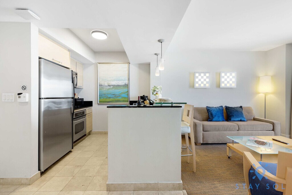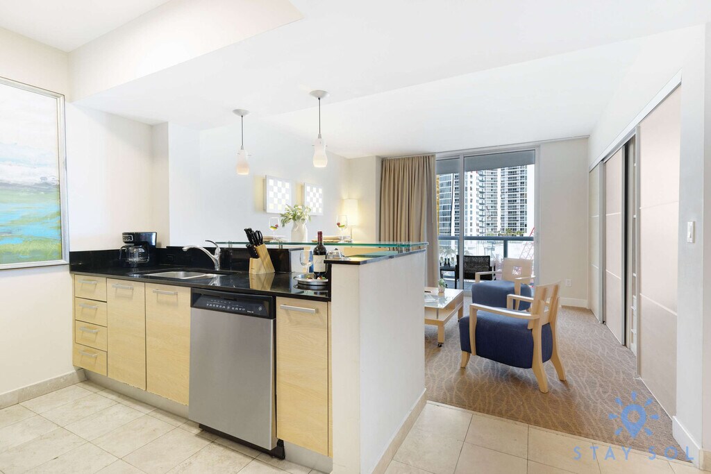 Located in Sunny Isles Beach, feel at home in this brand-new apartment, perfect for a family and friends getaway. The fully equipped gourmet kitchen includes a refrigerator/freezer, stove, oven, dishwasher, microwave, dishes, coffee maker, and toaster. The bedroom features a hairdryer, an electronic safe, an iron and ironing board, and a TV. Enjoy beautiful ocean views from the balcony. The unit also comes with a full kitchen and a washer and dryer. There is a TV in the living room. The bathroom is stocked with toiletries (shampoo, conditioner, and body wash) and towels. A pack-n-play crib is available upon request. There’s simply no better place between Fort Lauderdale and South Beach. Sunny Isles Beach is well known for Miami’s best-loved beaches, cafes, and restaurants, and it all looks wonderful from this private unit on Collins Avenue. It's just minutes from famous South Beach, Aventura Mall, the beautiful Bal Harbour Shops, Lincoln Road, theaters, grocery stores, nightclubs, and world-famous restaurants. You can enjoy views of the ocean, beach, and Heritage Park from your balcony. Aventura Mall is 1 mile away, Pro-Player Stadium is 8 miles away, Gulf Stream Casinos & Racing is 3 miles away, Hollywood Dog Track is 4 miles away, Jungle Island is 20 miles away, Miami Seaquarium is 23 miles away, Haulover Park & Pier is 4 miles away, Bal Harbour Shops are 5 miles away, South Beach is 10 miles away, Port Everglades is 16 miles away, Port of Miami is 19 miles away and Presidential Country Club is 3 miles away. Check-in is any time after 4PM and check-out is any time before 11AM. You may experience an increase in noise during the daytime due to the construction of a residential building next door. Swimming is at your own risk – no lifeguard is on duty. Children must be supervised by a responsible adult at all times. For your safety, no diving and no running. Please keep all doors closed and the air conditioning on at all times to help prevent condensation and property damage. [SI]