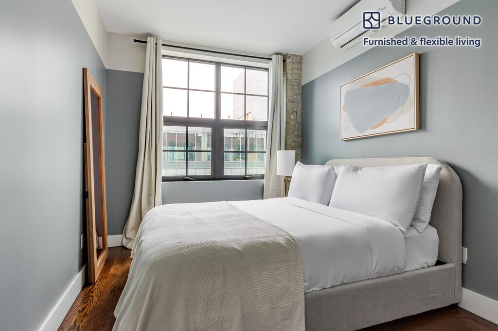 Discover the best of New York, with this two bedroom apartment in Williamsburg. It’ll be easy to simply show up and start living in this fashionably furnished apartment with its fully equipped kitchen, roomy living room, and our dedicated, on-the-ground support. (ID #NYC2039) The advertised rate of $7,252/month is the lowest available price, based on a 12 month(s) stay with a move-in date of March 25, 2026. Rates vary depending on the duration of stay, season, and other parameters. For exact pricing and additional pricing components, please visit our website and enter your desired move-in and move-out dates. The rate is applicable when billed upfront; it can be higher if billed in multiple payments. Brokers are welcome to reach out. Were you looking for an unfurnished lease? Try Blueground instead and upgrade from unfurnished to furnished living: - Furnished at rates comparable to unfurnished - No setup or furniture costs - save thousands - Move-in ready - save time, just bring your suitcase Designed with you in mind Gorgeous furniture, fully equipped kitchen, smart TV, and a premium wireless speaker are just a few of the amenities you’ll find inside this two bedroom apartment. Ideally located in New York, you’ll find a lot to love outside as well. When you’re ready to relax, you’ll be happy to discover every Blueground bedroom comes with superior quality mattresses, fully stocked linens, and cozy towels. We handle everything so you can simply show up and start living. This apartment also offers in-apartment laundry. Sleeping arrangements Queen Bed, 63in/160cm Queen Bed, 63in/160cm Amenities Building amenities unique to this two bedroom apartment include an on-site: - Dryer - Elevator - Game room - Washing machine - Lounge - Pets allowed Arrival and ongoing support The entire apartment is yours to enjoy! Throughout your stay, you’ll have access to our Client Experience team through the Blueground App. You can schedule additional cleanings, submit maintenance requests, and view our neighborhood recommendations with just a few taps. We’ll share all details upon confirmation of your stay. Ideally Located This furnished apartment is situated in Williamsburg, known as Brooklyn’s creative outlet. Residents vary from artists and young professionals working in the media or entertainment industries to families. Williamsburg Bridge is great for long strolls, running or biking. Over the weekend, visit Bedford Avenue, which is constantly buzzing with trendy boutiques, fine dining, outdoor day parties and a thriving music scene. East River State Park also offers a great sunset over the Manhattan skyline. Embarking on the L train, you can be in the heart of Manhattan in just a few minutes. Also the M and J trains make it easy to get to other downtown neighborhoods. Other things to note Building amenities may have an extra cost. This Blueground apartment has flexible lease options, allowing you to book it for one month, a year, or more. Pets are welcome, though weight limits and breed restrictions apply and may incur fees. Brokes CYOF. We take great pride in ensuring every photo displayed is shot in our own units with our actual furnishings. That said, we regularly refresh our decor and furniture arrangement, which may differ from what’s pictured. [SI]