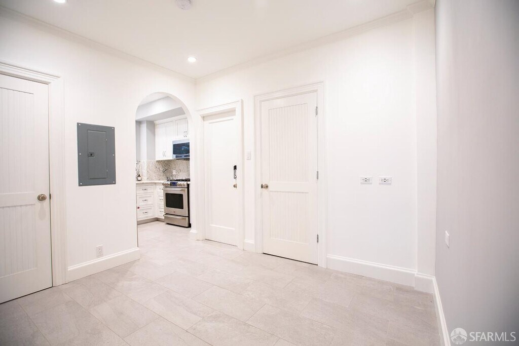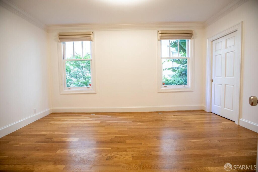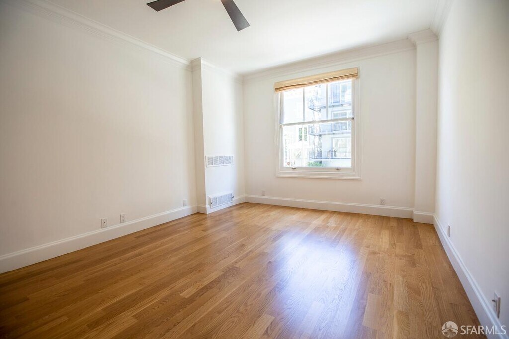 This beautifully remodeled, sun-drenched residence is located in a classic 1930s boutique elevator building in Pacific Heights, reminiscent of Manhattan’s Upper East Side. An inviting foyer with graceful arched doorways opens to a thoughtfully designed layout centered along a main hallway. The spacious living room features a gas fireplace flanked by bookcases, creating an ideal setting for entertaining, while the adjacent dining area connects seamlessly to a well-appointed kitchen with upscale stainless-steel appliances and verdant outlooks. The primary suite offers a walk-through wardrobe and private ensuite bath, and the second bedroom and full bath provide flexibility for guests or a home office. Additional amenities include in-unit washer and dryer, secure storage, on-site management, and water and garage service included. Ideally situated with a 98 Walk Score, just one block to Lafayette Park and close to Whole Foods, as well as the shops, cafés, and restaurants along Polk and Union Streets. Street parking only; no pets. Highlights: - Elegantly Updated - Elevator Building - 2 Bedrooms - 2 Remodeled Baths - Living Room w/Gas Fireplace - Dining Area - Remodeled Kitchen - Stainless-Steel Appliances - In-Unit Laundry - Hardwood Floors - Crown Molding - Extra Storage Room - Coveted Pacific Heights Location - 98 Walk Score