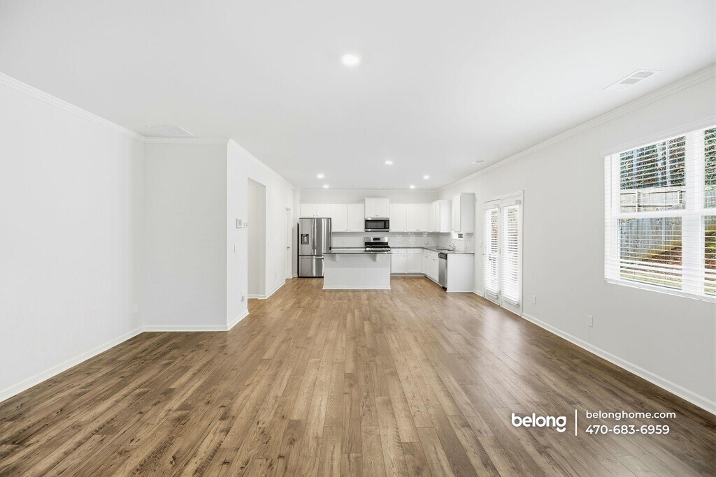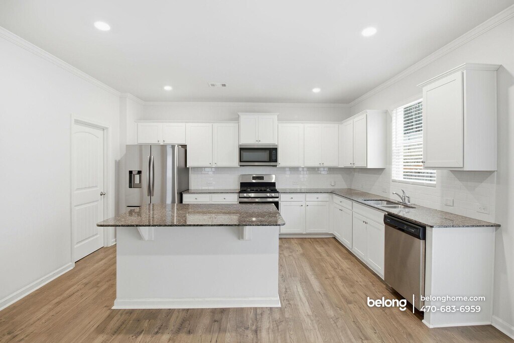 Packed with features that make everyday living feel easy to enjoy, this five-bedroom, three-bath abode offers generous space, a fresh look, and a layout that supports your routines. The wide living area immediately stands out with its glowing flooring, abundant windows, and a fireplace that adds a clear focal point for the room. Your kitchen keeps everything upbeat, offering white cabinetry, long countertop stretches, stainless steel appliances, and a central island that invites casual meals or conversation while you cook. This open layout connects easily to the backyard patio, giving you a natural spot for outdoor dining or weekend gatherings. A fully fenced yard adds even more usable space for play, pets, or simple relaxation. Five well-sized bedrooms add versatility for sleeping arrangements, work-from-home needs, or creative uses, and three full baths help keep mornings organized. The overall feel is clean, roomy, and ready to support many types of lifestyles. Living in Tennessee Glen places you in a quiet pocket of Marietta with great convenience close by. Grocery stores, restaurants, and everyday essentials along Powder Springs Road are just minutes away. Tumlin Park and Marietta Square offer spots for walks, picnics, and local events, and quick connections to major routes make commuting or weekend outings straightforward. *Fireplace is for decorative use only and cannot be used without consent from Belong. *Our homes come as-is with all essentials in working order. Want upgrades? Request it through the Belong app, and our trusted pros will take care of the rest!