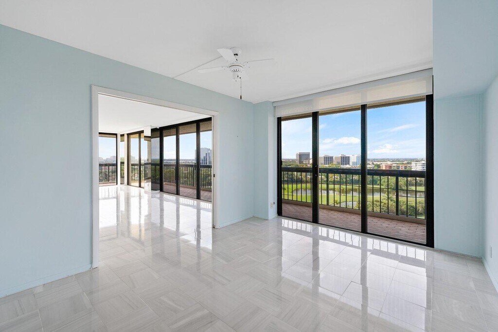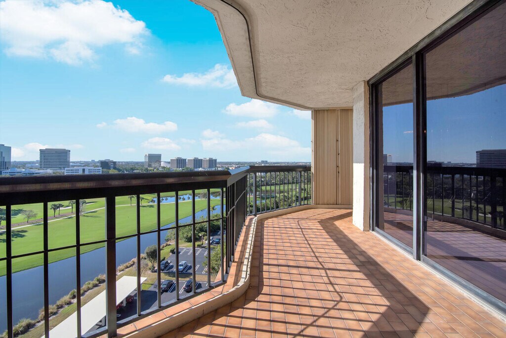 THIS IS FOR YOU THAT LIKES TO ENJOY A FULL DELUXE SERVICE BUILDING & SPECTACULAR VIEWS ON GOLF COURSE FROM THE WRAPAROUND BALCONY WITH AMAZING SUN RISES AND SUNSETS, & CITY TWINKLING LIGHTS AT NIGHT. BEAUTIFUL LARGE AND BRIGHT CONDO. YOU WILL LOVE THE WAY IT FEELS WITH WRAP AROUND TERRACE ACCESSIBLE FROM EVERY ROOM W/ FLOOR TO CEILING SLIDING WINDOW DOORS. BEAUTIFUL CARRARA MARBLE FLOORS. 3RD BR IS OPENED UP TO LR AND IS USED AS DEN. THE WHITE EAT IN KITCHEN IS UPDATED AND HAS AN ADJACENT LAUNDRY ROOM. ENJOY LARGE BEDROOMS WITH ENSUITE BATHROOM (SEPARATE ROMAN TUB AND SHOWER) AND WALKIN CLOSET FOR THE MASTER SUITE. THE LOCATION IS PRIME & CLOSE TO KRAVIS AND ONLY 3.5 MILES FROM BEACHES, PBI AIRPORT, AND ACROSS THE TANGER OUTLET MALL WITH WHOLE FOODS, MARSHALL'S, SAKS OF FIFTH AND MUCH MOR