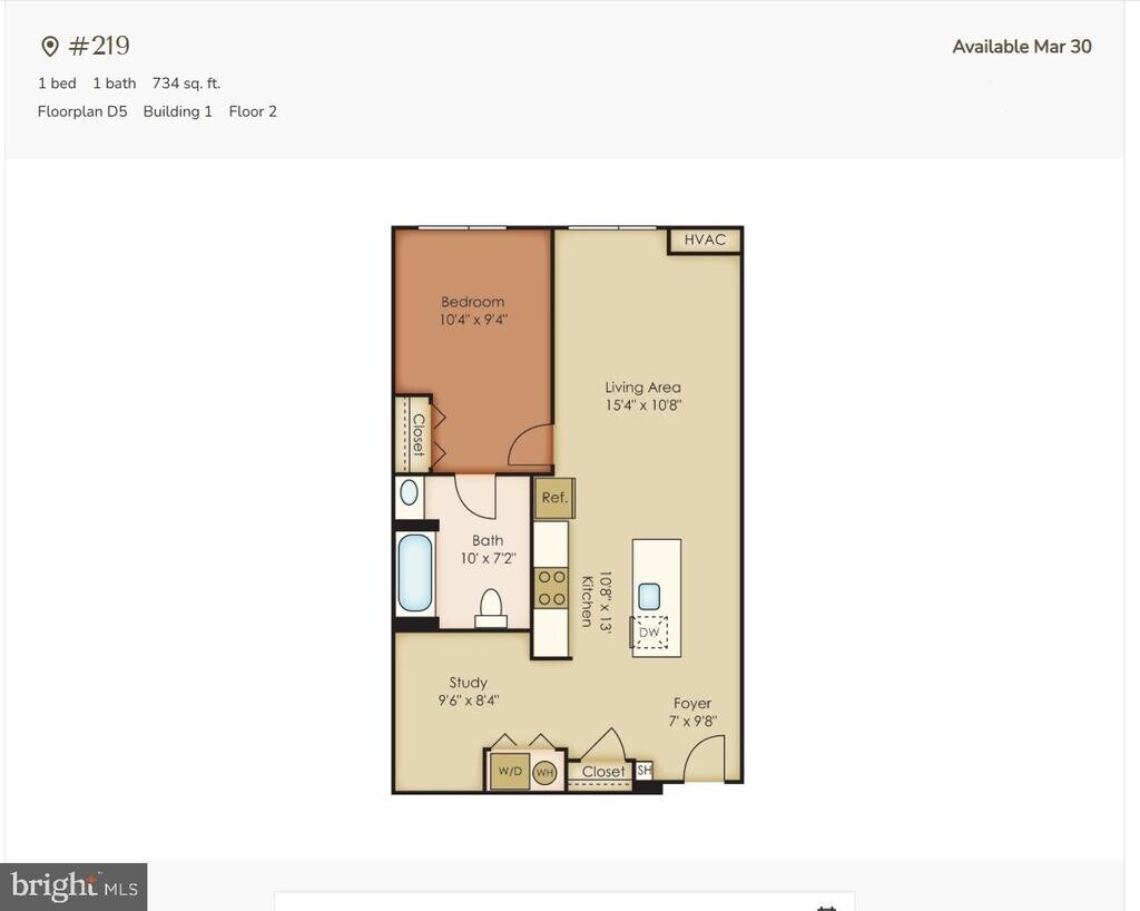 1 Dormitorio, 1 Baño, 734 pies²Disponible Mar 25Detalles de Diponibilidad