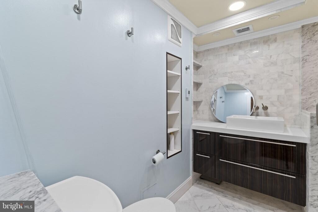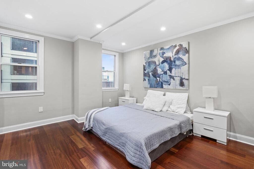 This beautiful home overlooks Rittenhouse Square and the beautiful garden entrance to Rittenhouse Plaza. 3 bedrooms and 3 full bathrooms. The residence has been beautifully updated while staying true to the original architecture and aesthetic of the building. Enter through a gracious foyer, with coat closet, that leads into the spacious great room with three oversized south-facing windows, boasting Rittenhouse Square views, beautiful ceiling detail, and ample space for living/dining room are perfect for entertaining. The eat-in kitchen has custom cabinetry, solid custom granite countertops, gas Jenn Air range with grill and an electric oven, stainless steel appliances, dishwasher, microwave, stone tile backsplash, breakfast bar, and access to the fire escape and service area. Also in the kitchen has a large pantry closet. The conveniently located laundry with newer Samsung stacked washer/dryer is just off the kitchen. The hallway leading to the bedrooms features built-in closets with sliding doors as well as a walk-in closet. The spacious primary bedroom has two windows, two large wall closets, and an ensuite bathroom, glass enclosed walk-in shower, and beautiful tilework. The second bedroom is generously sized and also features two large windows and wall closet. The generously sized third bedroom also has a large closet. This room could easily be used as a den, home office, private dining room or entertainment room. Residents of The Rittenhouse Plaza enjoy a 24-hour doorman, concierge, community room, and shared courtyard, as well as a desirable Rittenhouse Square address, steps from some of the city’s best restaurants, retailers, cultural institutions and within easy access to University City, the Market Street office corridor, public transportation, Amtrak’s 30th Street Station and all the best Philadelphia has to offer.
