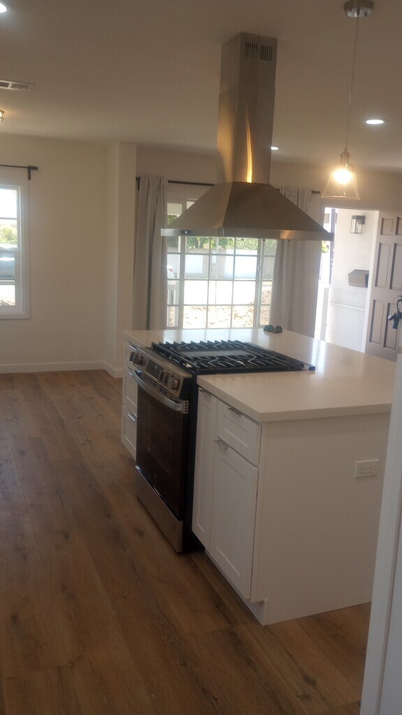 Stripped down to the studs. Major renovations and upgrades. All appliances and fixtures are NEW. Large approximate 1,535 sf, 3 bedroom, 2.5 bath. Looks and feels like new construction. Stainless steel range hood, dish washer and gas range. Kitchen center island. Soft-closing cabinet drawers. Comes with Refrig./Washer/Dryer. Open and clean floor plan. Highly energy efficient with Air Conditioning and forced air heat. Separate inside laundry room with hook ups. Instant hot water. Recessed lighting throughout. Wood floors. French doors. Private 2 car garage. EV elec. vehicle outlets to be installed in the garage within 1-2 months. Rear yard to be completed within a couple weeks. ADU in the back with its own separate entrance and utilities and lease. Close to transportation, freeways, restaurants, shopping, services and parks. This type of property rarely shows up on the market. Get it while you can. Won’t last long. Any internet/TV/Satellite coax/fiber installations need prior approval for design and housing provider present during installation. Income and credit to be verified. sect 8 not registered.