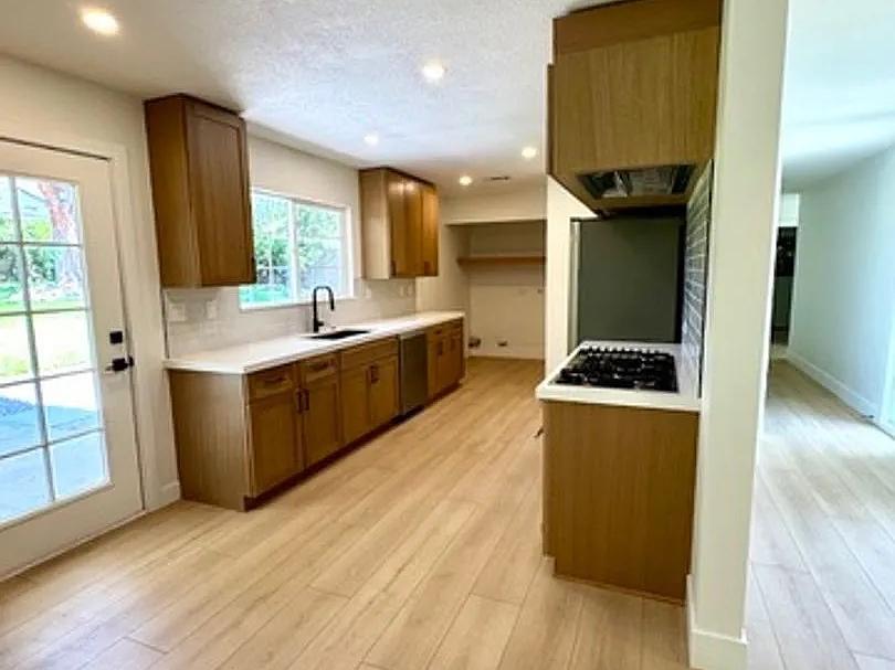 Welcome to your next level of living. This exceptional home has been thoughtfully reimagined to offer the perfect blend of elegance, comfort, and everyday convenience, creating a space that truly stands apart. From the moment you arrive, you are welcomed through a private courtyard where tranquil koi fish set a peaceful tone and create a sense of retreat rarely found in rental living. Inside, the home opens to a beautifully curated interior featuring brand new luxury vinyl flooring, fresh interior and exterior paint, and sophisticated recessed lighting that enhances every space. The kitchen has been fully remodeled with both style and function in mind, offering stainless steel appliances, modern cabinetry, and sleek finishes that make it as ideal for entertaining as it is for daily living. The bathrooms have been tastefully updated, every room is equipped with ceiling fans, and the thoughtfully designed layout allows natural light to flow effortlessly throughout the home. Step outside and experience your own private outdoor sanctuary. The expansive backyard offers a covered patio, mature trees, and a lush green lawn, creating the perfect setting for relaxing evenings, weekend gatherings, or simply enjoying the calm surroundings. A brand new driveway and spacious two car garage complete the home and add to its overall convenience and appeal. Whether you are working from home, hosting guests, or enjoying a quiet evening in, this home delivers a lifestyle that feels elevated, comfortable, and complete. Opportunities like this are rare and do not last. Available for immediate move in. Schedule your private showing today and experience firsthand what makes this home truly special.