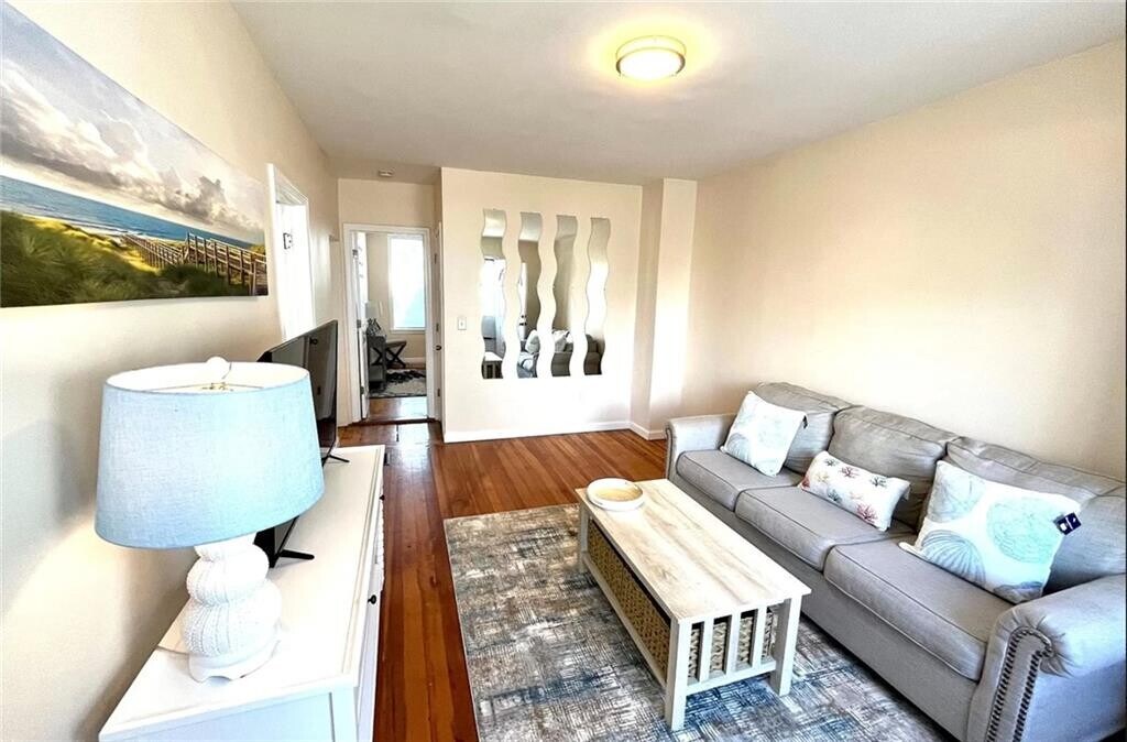 JULY SUMMER RENTAL ($8,500) - FURNISHED Spend the month of July in this charming and fully furnished Unit 4,ideally located in one of the most desirable areas of Newport. Just one block from the Newport Mansions,approximately 0.4 miles to Ocean Drive,and 1 mile to Thames Street,this property offers the perfect coastal summer experience. Property Overview: • 2 Bedrooms - 1 Full Bathroom • Approximately 740 Sq Ft • First-Floor Unit (Unit 4) • Fully Furnished • July Rental: $8,500 Interior Features: • Newly updated kitchen • Tastefully furnished throughout • Two sunny and spacious bedrooms with queen beds • Comfortable living area with TV • Hardwood and laminate flooring • Bright,inviting layout (dining table to be added near living room area) Appliances Included: • Refrigerator • Oven / Range • Disposal • Exhaust Fan • Electric Water Heater • Washer & Dryer (common area) Additional Features: • Two assigned off-street parking spaces • Basement storage • Common laundry facilities • Shared outdoor space • Private entry • Baseboard gas heating • WiFi included Pet Policy: • One well-behaved pet may be considered with additional terms and pet rent Enjoy easy access to beaches,scenic drives,and downtown Newport’s shops and restaurants while staying in a well-appointed and ideally located summer retreat. MLS ID 1407194