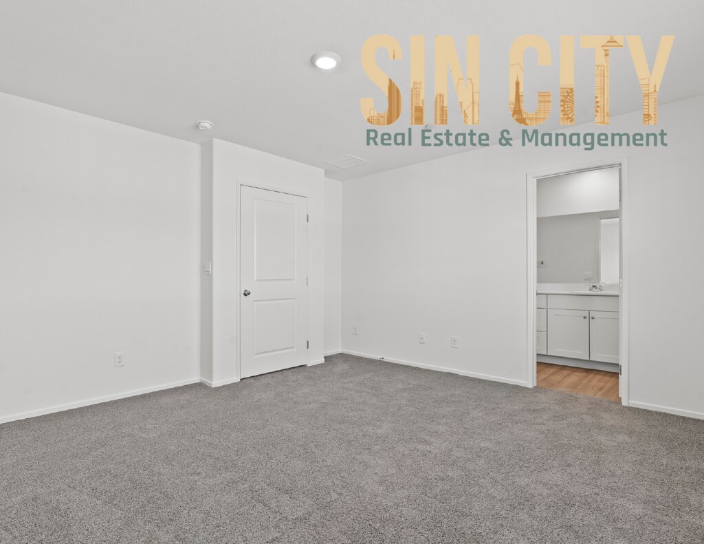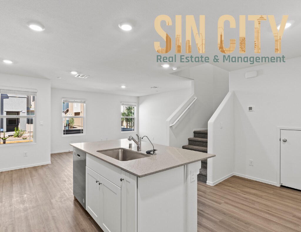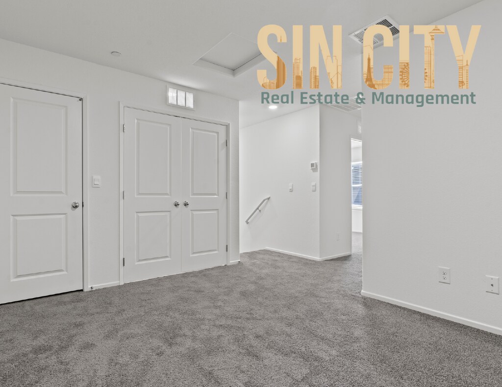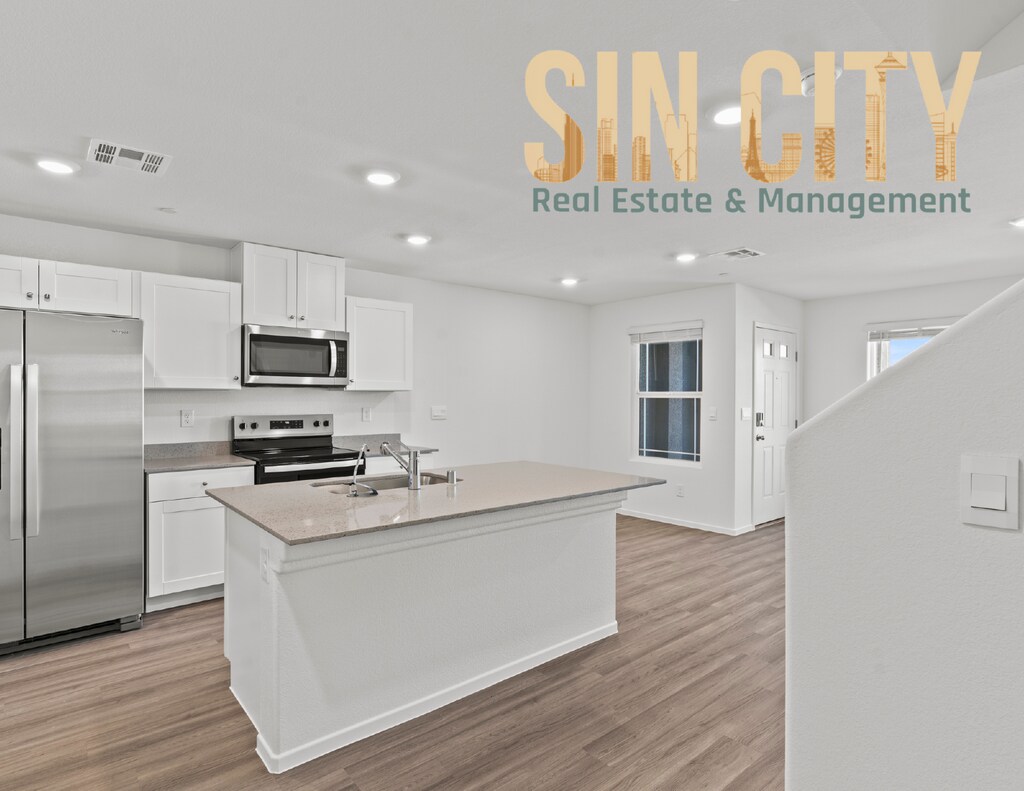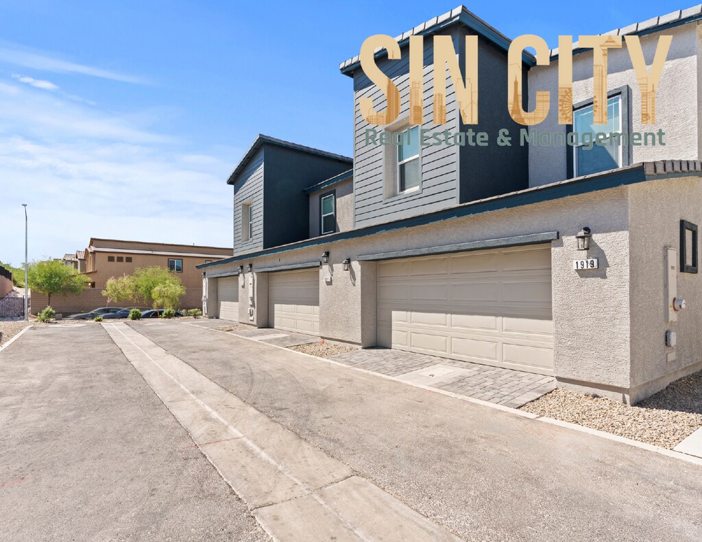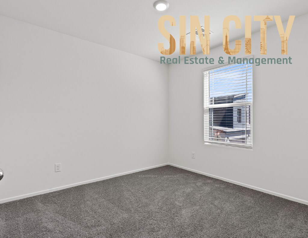 Welcome to this stunning, brand-new 2-story townhouse, just 18 minutes from the Las Vegas Strip! Be the first to call this spacious home yours, featuring 3 large bedrooms and 2.5 upgraded baths. Upstairs, you'll find plush carpeting, a versatile den perfect for a home office or lounge, and ample storage throughout the house. Enjoy a 2-car garage, a cozy courtyard area, and proximity to both a pet park and a community pool—perfect for relaxation and recreation. This home comes fully equipped with brand-new systems, including HVAC, stainless steel appliances, washer and dryer, a smart home setup, reverse osmosis water filtration, and a tankless water heater. Plus, it’s dog-friendly! Managed directly by the homeowner for a personalized rental experience. Don't miss the chance to live in this fantastic home! Sin City Real Estate and Management LLC B.1003001.LLC