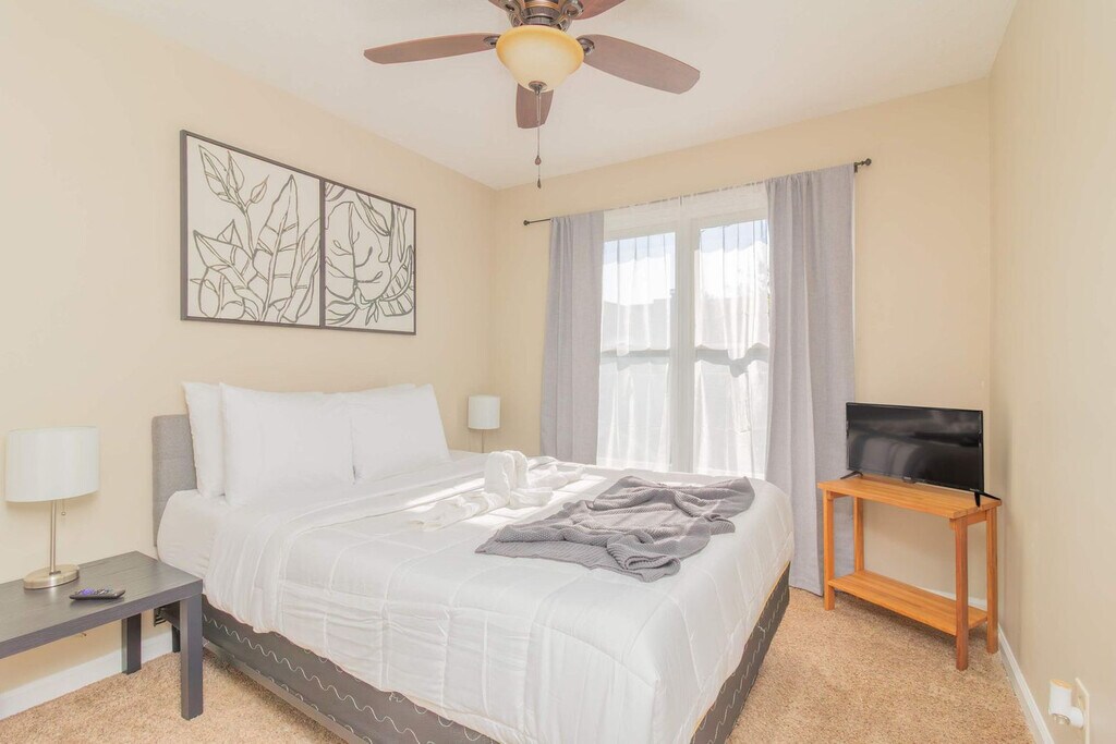 The advertised rate of $3,664/month is the lowest available price, based on a 1 month(s) stay with a move-in date of April 13, 2026. Rates vary depending on the duration of stay, season, and other parameters. For exact pricing and additional pricing components, please visit our website and enter your desired move-in and move-out dates. The rate is applicable when billed upfront; it can be higher if billed in multiple payments. Welcome to this beautiful townhouse in Columbus’ Park District! Tucked away in the charming Midtown neighborhood near Weracoba Park, this spacious home offers the perfect blend of comfort and convenience. You’ll be just minutes from St. Francis Hospital, Piedmont Midtown, and Downtown Columbus and only a 15-minute drive to Sand Hill and Fort Moore. Whether you're here for work, family, or a weekend getaway, this location makes it easy to enjoy everything Columbus has to offer. This thoughtfully designed 3-bedroom, 2.5-bathroom townhouse is perfect for families, groups, or traveling professionals. All three bedrooms are located upstairs: one features a king-size bed, another has a queen-size bed, and the third is set up with two sets of bunk beds, great for kids or larger groups needing flexible sleeping arrangements. There are 2.5 bathrooms in total, including a convenient half bath on the main level and two full bathrooms upstairs, one with a tub and one attached to a bedroom. The main living area offers two cozy chairs and a queen-size sleeper sofa, making it easy to relax or accommodate additional guests. The full kitchen is stocked with everything you need, including a dishwasher, stove, oven, microwave, and cookware. A washer and dryer are also included in the home for your convenience. Outside, enjoy a partially fenced backyard with a small patio, outdoor seating, and a grill, perfect for relaxing evenings or weekend cookouts. You’ll also find thoughtful local touches throughout the home, like a curated bookshelf featuring favorite Columbus authors and food-themed art to help you discover the best local restaurants. Stylish, comfortable, and full of personality, this home is a welcoming base for your Columbus stay. Tucked away in the charming Midtown neighborhood near Weracoba Park, this home offers the perfect mix of quiet surroundings and central convenience. You’ll be just minutes from St. Francis Hospital, Piedmont Midtown, and Downtown Columbus, with local shops, restaurants, and parks close by. Whether you're headed to Fort Moore or Sand Hill, you're only a 15-minute drive away, making this location ideal for both work and relaxation. We like to give our guests maximum privacy, so we offer contact-free check-in via a digital door code. Just know that we are only a phone call away if ever the need arises during your stay. Quiet hours are between 10 PM and 7 AM. If our cleaning crew reports any signs of smoking cigarettes, vapes, e-cigs, pipes, etc. (smell, ash, etc.) in or around the home, an automatic $500 damage charge will be incurred. The same charge applies if cigarette butts are found outside of the home. If marijuana is smoked in or around the home, a $500 fee will be charged, and details about the reservation may be turned over to the appropriate authorities. No parties, events, or illegal activities are allowed. If you violate quiet hours and disturb the neighbors, we will cancel your reservation; you will be required to leave the property immediately and you will not be eligible for any refunds. In some homes, we use noise monitoring technology to monitor decibel levels and uphold our commitment to be a good neighbor. Pets are not allowed on the property or inside the home. If we are made aware of a pet on the property, a deep cleaning fee of $500 will be charged and guests will be required to depart immediately with no refunds given. Our homes are equipped with a motion-activated exterior video camera. No video recording devices are located inside of the home. Guests are required to provide notice of and obtain consent for any secured weapons prior to booking. All weapons present must be secured. If prior notice for a secured weapon is not provided, the reservation is subject to cancellation with no refund. Guests must abide by all rules posted on premises regarding the safe use of any amenities. By booking this property, guests waive any and all claims of liability against homeowner or any property management entity affiliated with homeowner relating to the use of these amenities whether due to loss, damage, injury or death. [SI]