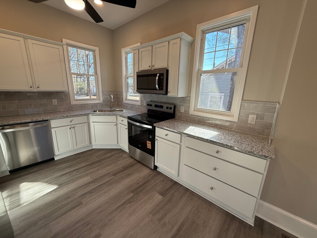 Fully renovated, large 4-bedroom 3 bathroom home located in the Five Points area. Off-street parking. Stainless appliances, washer and dryer included. Rent includes: - pest control - maintenance
