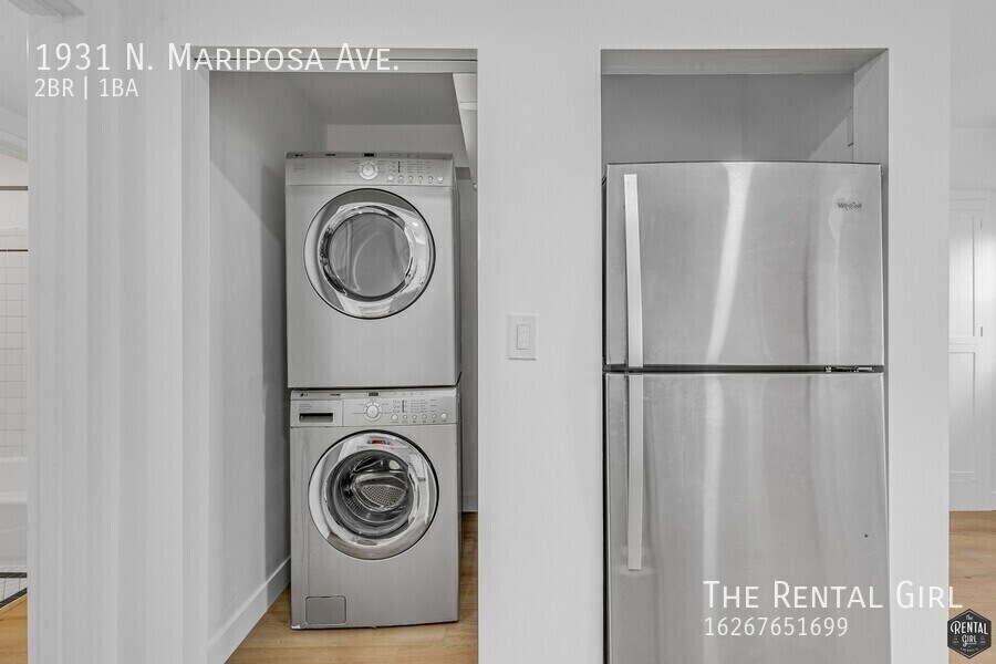 Welcome home to this character-rich Mariposa residence, set on a quiet tree-lined street and tucked within a charming triplex that feels both peaceful and perfectly connected to the best of the neighborhood. Just moments from Vermont Ave favorites like The Punchbowl, Loupiotte Kitchen, and House of Pies, and only a quick drive to Hillhurst staples including Home, Maru Coffee, Alcove Bakery, the new Wilde’s, and more. The location keeps you close to everything while still feeling like your own hidden pocket of the city. A shared front patio and lush greenery welcome you in, setting the tone before you even step inside. This lower-level unit blends thoughtful updates with preserved original charm, creating a space that feels fresh, warm, and full of personality. Just inside, an adorable window seat catches the light and instantly invites you to slow down with a book, morning coffee, or an afternoon iced tea. The living room is expansive and centered around a striking floor-to-ceiling decorative fireplace that brings texture and character to the space. Off the living room, a bonus den offers flexibility for a dining area, home office, reading lounge, or creative studio. Pass by a hidden nook area and you are greeted by a traditional dining space as well, giving the layout both charm and versatility. The kitchen holds onto its vintage soul while offering practical updates. An iconic O’Keefe & Merritt stove anchors the space, paired with a refrigerator, dishwasher, and stacked washer and dryer. There is plenty of room for an eat-in setup, extra storage, or open shelving to style the space your way. Both bedrooms are set toward the back of the home for added privacy and are generously sized with wall-to-wall closets. One bedroom looks out onto lush greenery for a serene, tucked-away feel, while both enjoy views toward the shared backyard. The bathroom is bright and timeless with classic black and white tile, clean lines, and cabinetry that offers smart, modern storage. Out back, the shared outdoor space will soon feel like a small urban oasis again. The lawn is currently being re-seeded to welcome fresh grass and a revitalized green space. In the meantime, mature fruit trees, open space to stretch out, and a recently refreshed patio create the perfect setting for slow weekend mornings, afternoon hangs, or evening dinners outside. This is one of those rare homes that balances original charm with thoughtful updates, generous space, and an inviting layout that feels instantly comfortable. A special Mariposa find within a sweet triplex setting, ready to welcome its next chapter!