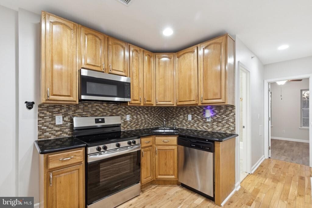 Welcome to this newly renovated duplex! This multi-floor unit’s main level features hardwood floors and an open living area that flows into a modern kitchen with stainless steel appliances, quartz countertops, and generous cabinetry. Two bright bedrooms sit on this floor, one at the front and one at the rear, each with LVP flooring, spacious closets, and ceiling fans. The full bathroom includes a tub-shower combo. Just off the kitchen, a rear door leads to a private patio, ideal for grilling, relaxing, or hosting guests. The finished basement offers a wide, flexible space that works well as a gym, office, or additional living area. This level also includes two more well-sized bedrooms with ample closet space and ceiling fans, a full bathroom with a tub-shower combo, and a laundry closet tucked neatly away. On the upper floor, the fifth bedroom features a large closet, a ceiling fan, and access to a private rear deck—an inviting spot for unwinding or enjoying outdoor space in a more secluded setting. Located near Temple University and Girard College, this home is also near Broad Street and public transportation, giving you easy access to the city. Schedule your tour today!