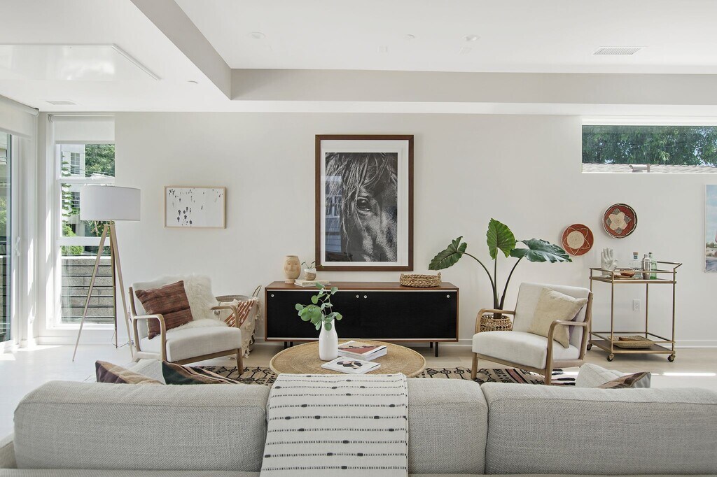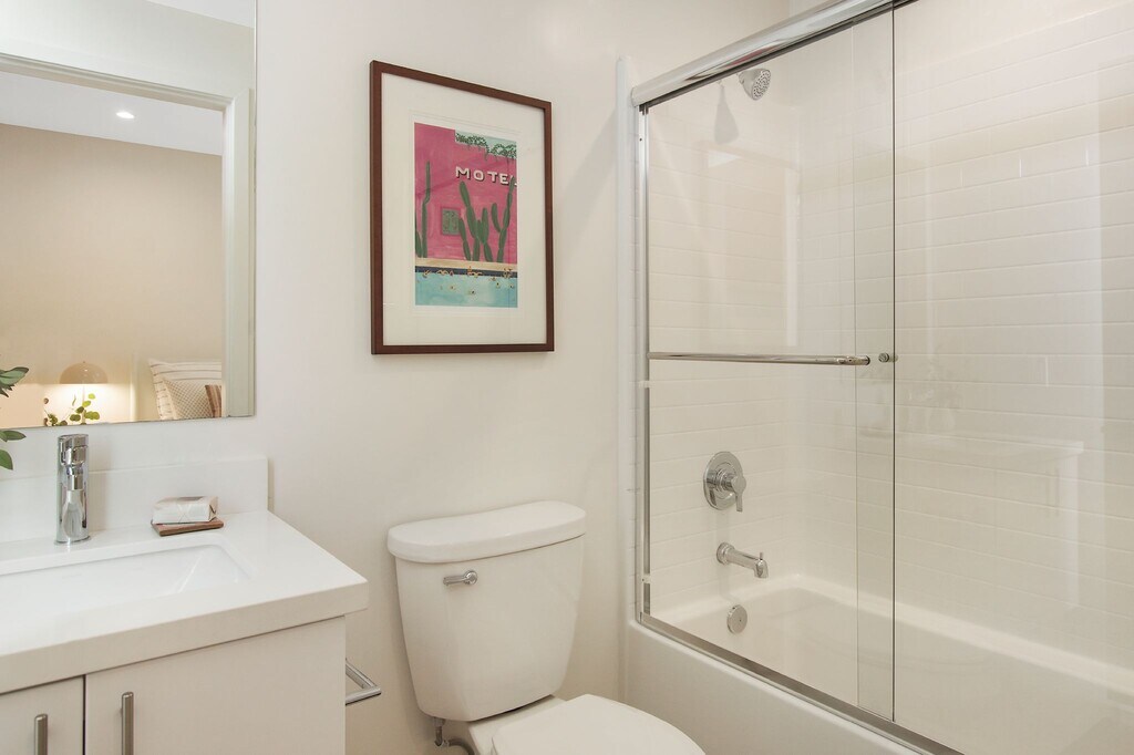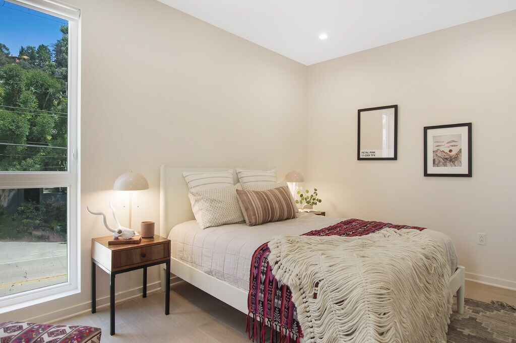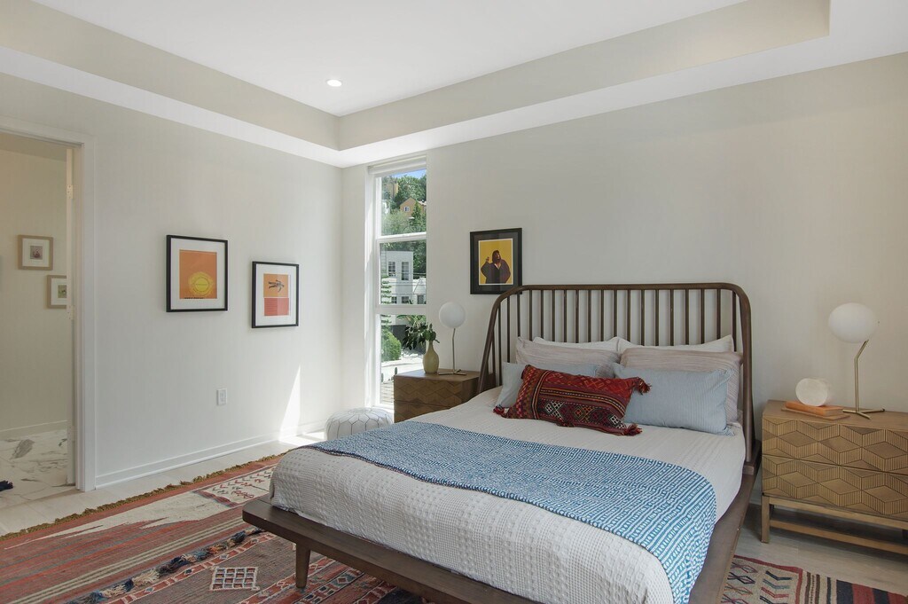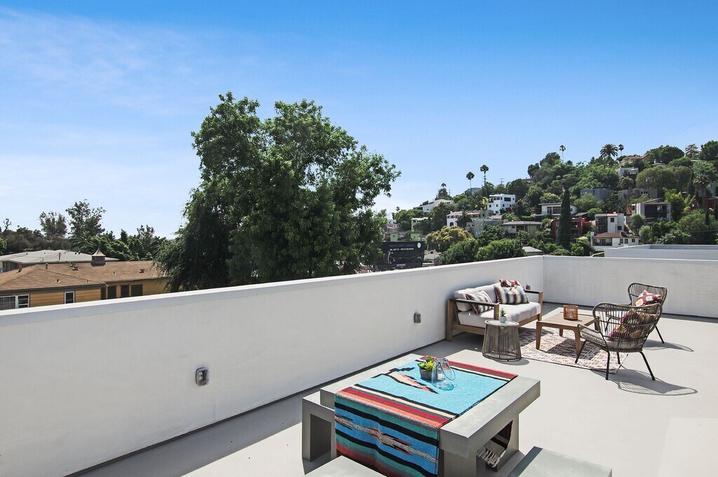 Modern Silver Lake single family home with a roof deck & private back yard! Enter into the foyer or from the two-car garage with direct access. 1st floor offers a bedroom with en suite bath. Head up to the dramatic living room with oak floors, open to the dining room & kitchen. The gourmet kitchen has quartz counters & stainless Bosch appliances. A full wall accordion door opens off of the dining area to enjoy true indoor/outdoor living. The 3rd floor offers a primary bedroom suite with a huge walk-in closet & en-suite bath with double sinks & an oversized shower. There is another bedroom on the 3rd floor with an en-suite bath. The spectacular rooftop deck with unobstructed views westward - perfect for a glass of wine at sunset! Central A/C with a thermostat on each floor as well as a stackable laundry next to the primary. Access to transportation & downtown LA. Stone's throw to Casita del Campo, Hyperion Public Bar, Lyric Theater, Hype Yoga Studio & Gelsons. Top-rated Franklin Elementary and Thomas King Middle!
