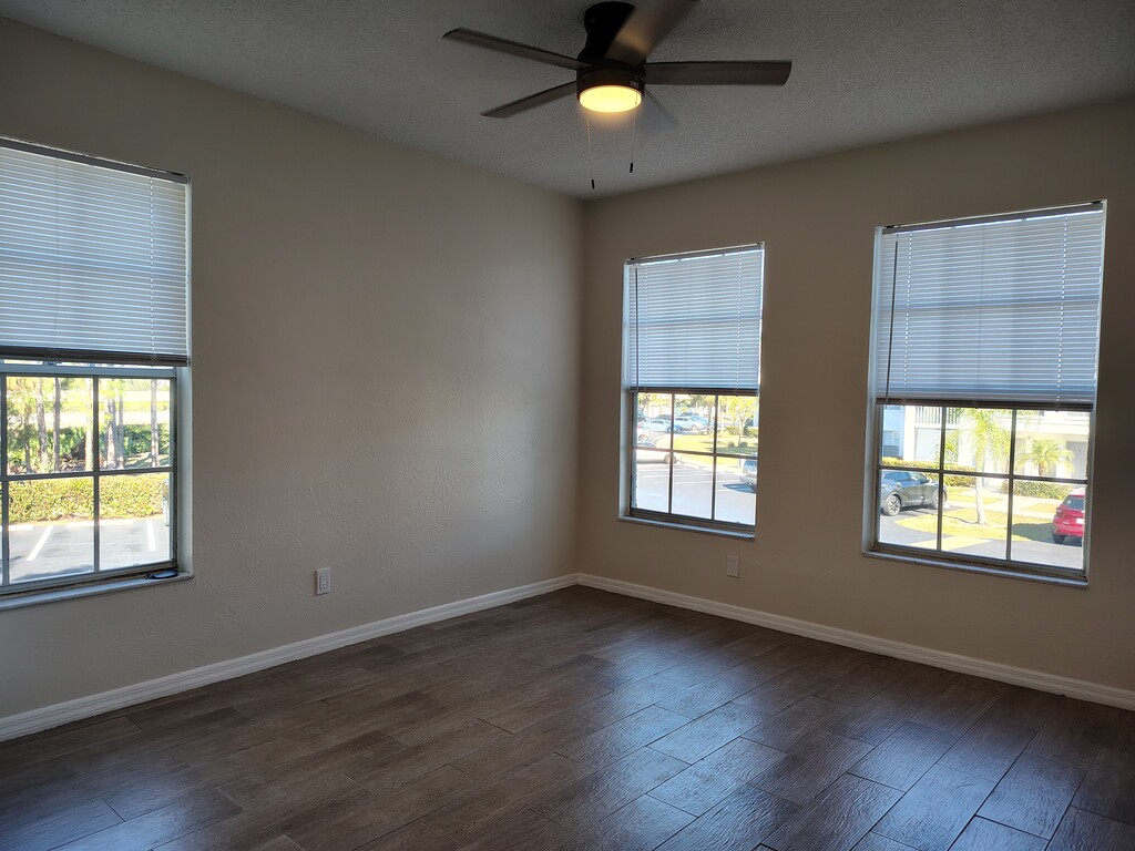 Newly renovated one bedroom + one den condo. New Kitchen, all new appliances. Gated community. Ready for occupancy. Screened lanai. Top/second floor with vaulted ceilings. New kitchen with quartz countertops. All new appliances. One year lease. Includes Fridge, Stove, Microwave, Dishwasher, Washer & Dryer. Includes parking ($25 decal fee). Central Air Conditioning and water included. Electricity is the responsibility of the tenant. No smoking in the unit. Deposit of $1000 to be held for the duration of the tenancy and returned in full if no damages upon vacating. Available for immediate occupancy, upon condo association approval ($100 application fee). Features of Complex: On site management. Gated community. Pools, spa. Gym. Playground. Tennis court.