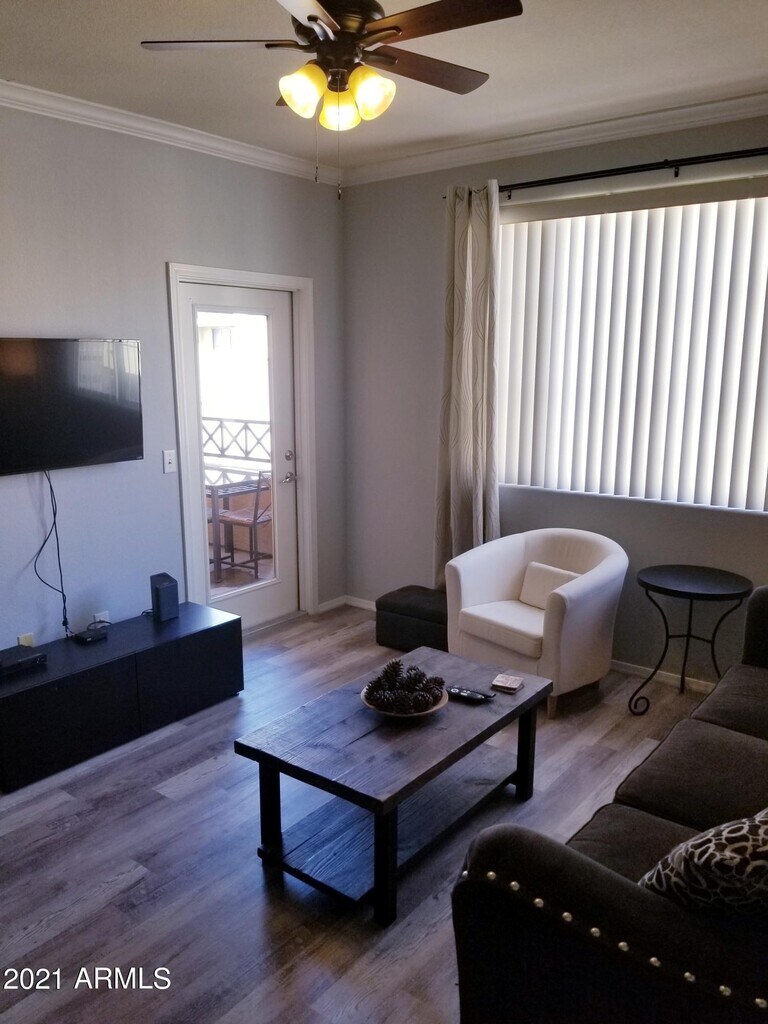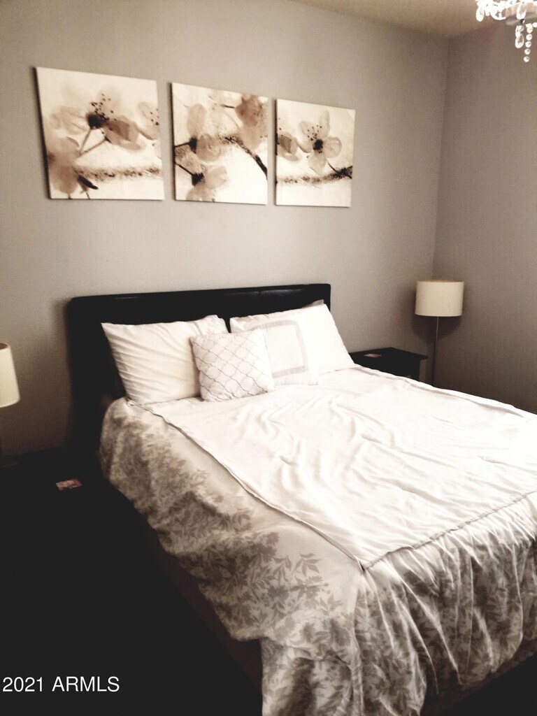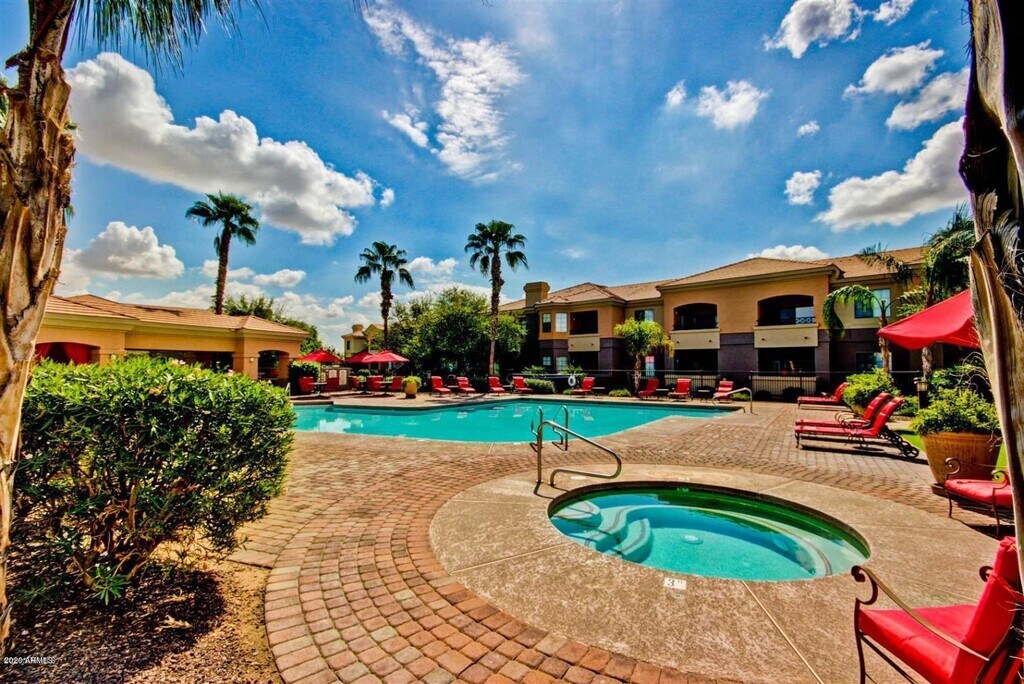 Furnished Rental Available Highly desirable 1 bedroom condominium home. Excellent location in this GATED community. Heated Pool! This newer condominium built in 2004 features New Paint,and flooring. 9 ft Ceilings,Crown Molding,Private Patio and Gourmet Style Kitchen. All appliances are here including Refrigerator plus Washer and Dryer. Close Walk to Resort Pool & Spa,State of the Art Fitness Center,Professional Conference Room,Resort Style Landscaping,Business Center,Billiards Table,Fireside Lounge w/ Five Flat Screen TVs & WiFi. Great shopping,close to SanTan Mall,highway access,parks and golf.