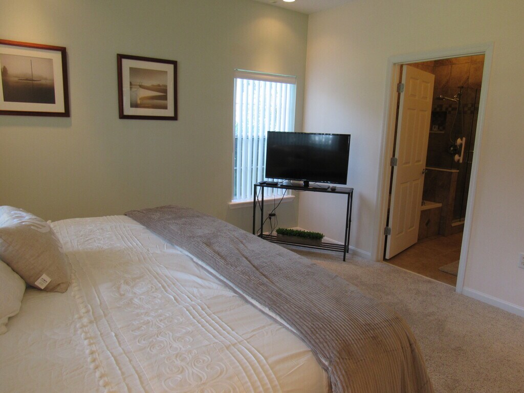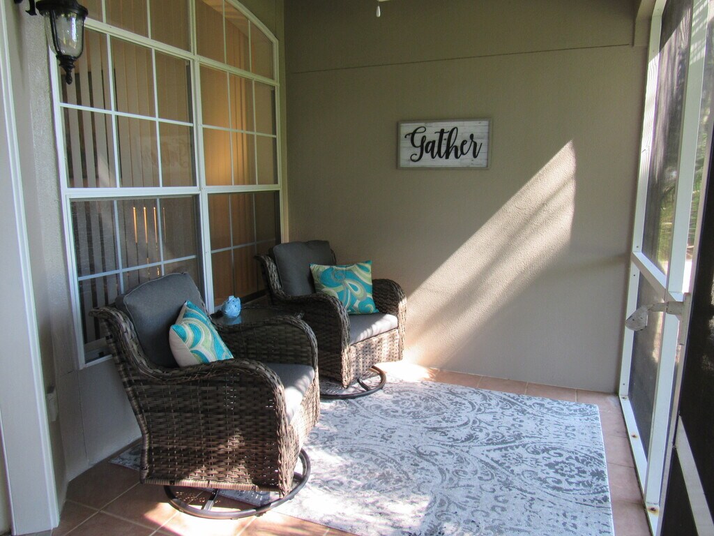 Available APRIL 1 through DECEMBER 31, 2026 - Beautifully appointed, spacious, 2 bedroom, 2 bath single-story, end unit townhome with a 2 car garage in The Estates at Turnbull Bay. This home is fully furnished and ready for you to call it home. Situated on the 4th tee box with a gorgeous lake view, this stylish home has high ceilings throughout, tile throughout the main living areas with carpet in the bedrooms. The large kitchen has ample counter space for the home chef, stainless steel appliances and granite countertops. Enjoy your coffee from the coffee bar out on the screened lanai overlooking the golf course and a large lake, or catch some sun on the paver patio. The master suite has a king-sized bed, double vanity, garden tub, step-in shower and large walk-in closet. The second bedroom has a queen-sized bed and a walk-in closet. The second bath has a tub/shower combo. Community pool. Washer and dryer included. Lawn care and pest control included. Utilities included. Small to medium dog friendly (breed restrictions apply). 3 month minimum lease term. Leases less than 6 months and 1 day require an additional 12.5% occupancy tax. This home is available through the end of 2026, but is reserved January - March of 2027. Call us today to learn more!