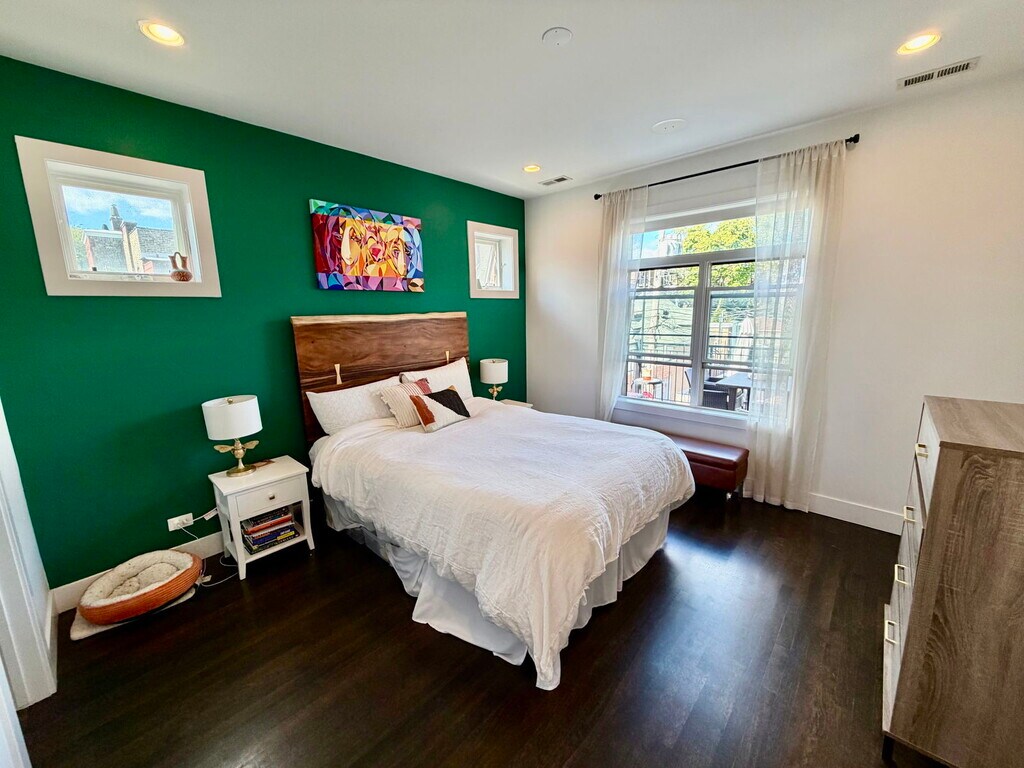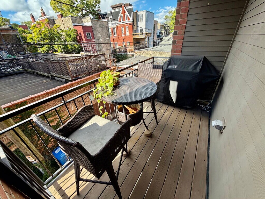 Tucked away on a peaceful, tree-lined block in the heart of Wicker Park, this stylish 2 bed / 2 bath condo blends modern comfort with luxury finishes. Soaring 9-foot ceilings and oak hardwood floors set the tone for a bright, open living space filled with natural light. The chef-inspired Italian kitchen features quartz countertops, a Viking range, Bosch appliances, and direct access to a private side balcony ideal for grilling. The primary suite offers a spa-quality retreat with heated floors, a steam shower, and body sprays accented by Toto and Hansgrohe fixtures. A spacious rear deck is perfect for entertaining or relaxing outdoors, and a private storage unit adds convenience. -- Property Management firm requires mandatory Resident Benefit Package additional $40.00 per month; includes renters insurance, positive credit reporting for on-time rental payments, identity fraud protection and more. Presented by Fulton Grace Realty, Chicago, IL. Listing posted by Neil Turk [SYNDID 4138981 10092025]