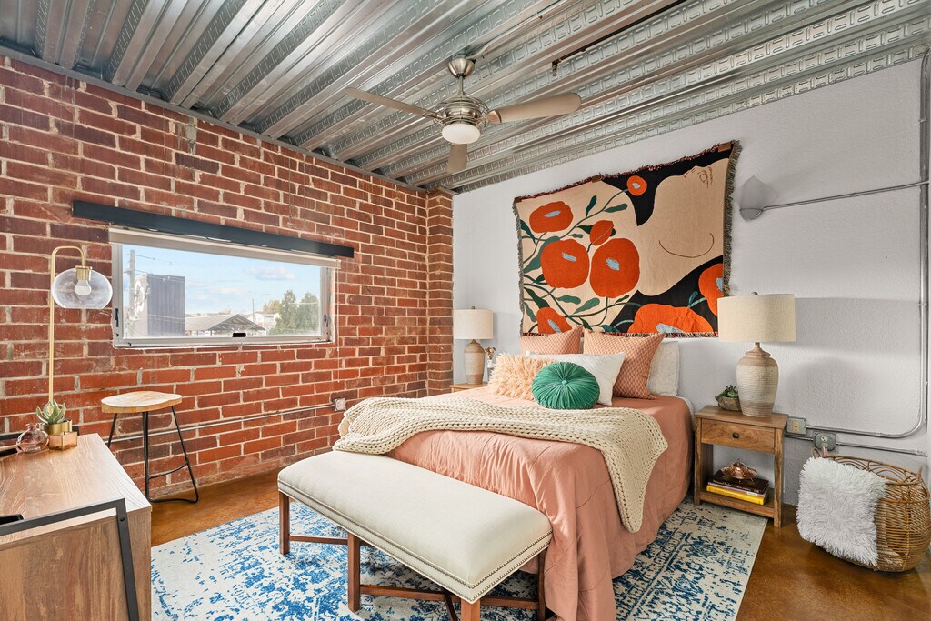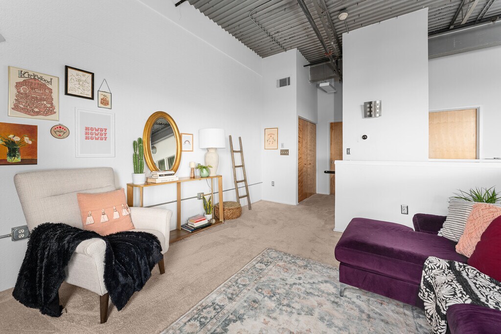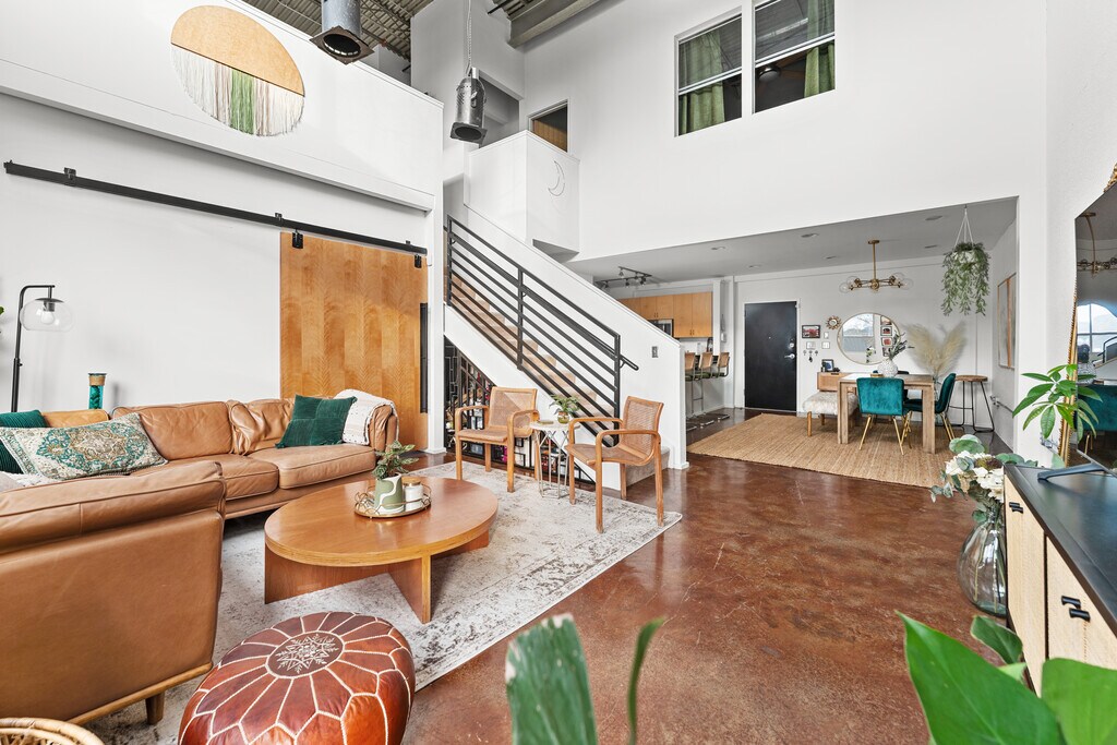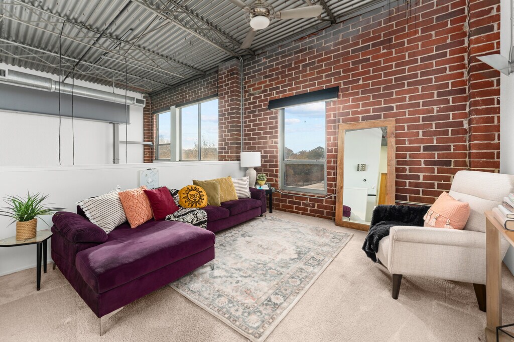 Bright and modern 3-bedroom, 2-bath industrial loft featuring soaring ceilings, exposed brick, and oversized windows that fill the space with natural light. The open living area flows beautifully into a stylish dining space and a cozy main-level bedroom with a sliding barn door. Kitchen, laundry, patio, and hybrid bathroom on the main floor. Upstairs features expansive master bedroom, additional loft space, additional closet space, and renovated bathroom. Freshly renovated bathrooms, 20 feet high ceilings, stained concrete floors, and carpeted upstairs. Enjoy the warm glow from west facing lighting inside or on the patio. Motorized shades. Amenities include gym, pool, courtyards, dog park. Walking distance to Candler Park, downtown Kirkwood, Pullman yards, Edgewood/Candler park MARTA station. Option to enjoy the space fully furnished. Pet friendly. Property includes Nest Lock & Nest Ring Camera. Minimum 12 month lease. No smoking. Furnished optional. 1 parking spot included, optional for a 2nd tandem parking spot. Pet policy flexible and to be discussed. Utilities including water and sewage included in base rate. Fiber wifi optional for $70/month. Tenant takes care of Georgia Power installation.