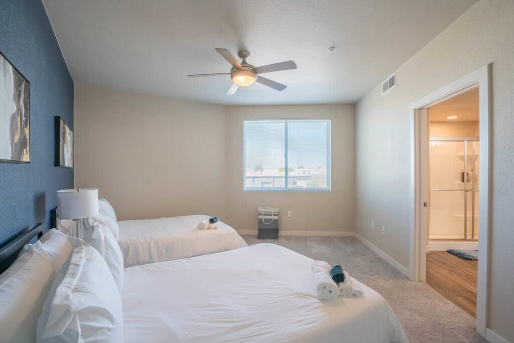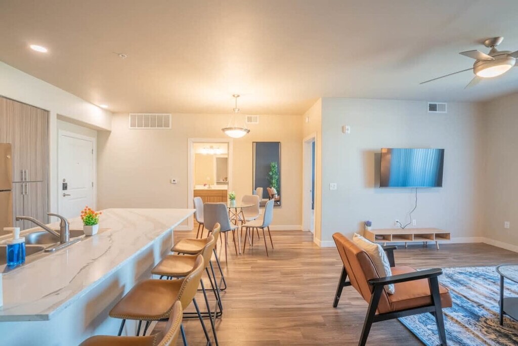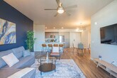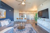 Enjoy a stylish experience at this centrally located apartment in the heart of Tempe. Discover serenity in this chic downtown retreat, surrounded by award-winning restaurants, eclectic shops, and historic landmarks. With convenient access to attractions, this stylish apartment serves as your gateway to seamless exploration. Relax in this 2-bedroom, 2-bathroom unit featuring an innovative open-concept design that blends the living and dining areas with the kitchen, creating a modern and sleek living experience. The living room is ideal for relaxing and enjoying the company of friends and family while watching a good movie or a show. The fully equipped kitchen allows you to easily prepare your favorite meals with modern amenities. Parking is available on the premises. Pets are allowed depending on size or if they are service animals. An additional cleaning fee is required per pet: $25 per night for 1-7 nights, $200 for 8-29 nights, and $300 for 30+ nights. There is a 2 pet maximum and only cats and dogs are allowed. If pets are brought without prior notification, a $500 fee will be imposed. Early check-in/check-out may be accommodated at a fee of $25 per hour, subject to availability. Nestled in the heart of Tempe, this apartment is strategically located near Arizona State University, providing easy access to cultural events, sports games, and academic activities. Explore the thriving Mill Avenue District, a hub for shopping, dining, and entertainment, all within a short distance from your temporary home. Immerse yourself in Tempe's dynamic scene with attractions like Tempe Town Lake, Arizona Mills Mall, and the Desert Botanical Garden. Enjoy the vibrant nightlife along Mill Avenue and take advantage of the Arizona sunshine at nearby Papago Park. Quiet hours are between 10pm and 8am every day. If there are noise complaints or any violation of this rule, it may result in cancellation of booking and removal from property without refund. There is a strict no-party policy, and no unauthorized guests are allowed at the unit, with a $100 fine per guest if discovered. Smoking is prohibited on this property, including balconies and in or around the building. If any signs of smoking are found, a fine of $500 will be imposed. Noise monitors are installed in the unit, and tampering with them will incur a fee. Security cameras are in the hallways for security purposes. Lost or unreturned keys will incur a charge of $80 for key replacements and $150 for key fob replacements. A late check-out fee of $500 will be charged for delayed checkouts, with no exceptions. [SI]