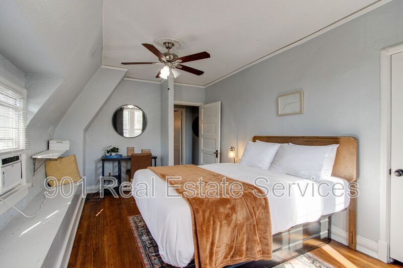 This fully furnished 2 bedroom, 1 bathroom upstairs unit is located in midtown near Cooper-Young. Original hardwood flooring, slanted ceilings, and vintage details add charm and character throughout the space. The living room flows into a separate dining area, and the kitchen features open shelving and comes fully stocked with cookware and kitchen essentials. Both bedrooms are cozy and inviting, with large windows that bring in great natural light. The full bathroom has a shower and large vanity. A parking pad is included, and tenants have access to a shared backyard. Washer/dryer included in large laundry room. Located just steps from the annual Cooper-Young Festival, local nightlife, restaurants, and more—Cooper-Young was named one of the top 5 coolest neighborhoods in the country by Sorry, no pets. SCHEDULE A SHOWING: Professionally managed by 901 Real Estate Services *Additional fees may apply. Please see below. Some photos may be virtually staged.* *Typical fees for approved applicants, not including security deposit: one-time admin fee of $250. Advertised rent price per month includes $40 Resident Benefit Package. Please ask the Property Manager for more information.* **Avoid scams: We do not post our properties on Facebook Marketplace or Craigslist and will never ask you to pay anything through CashApp, Zelle, or Venmo.** Amenities: furnished, refrigerator, appliances included, washer/dryer included, off-street parking, beautiful hardwood flooring, central heat & air, ceiling fan(s), large shower, located in midtown, parking pad, dining room, shared backyard