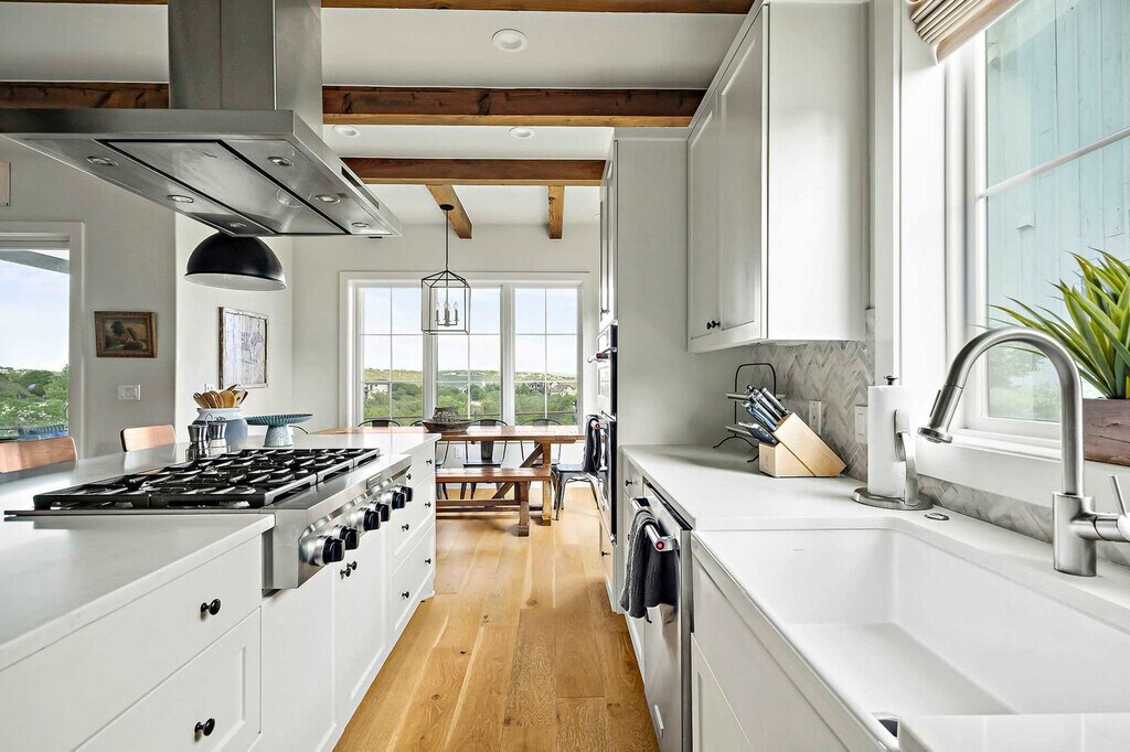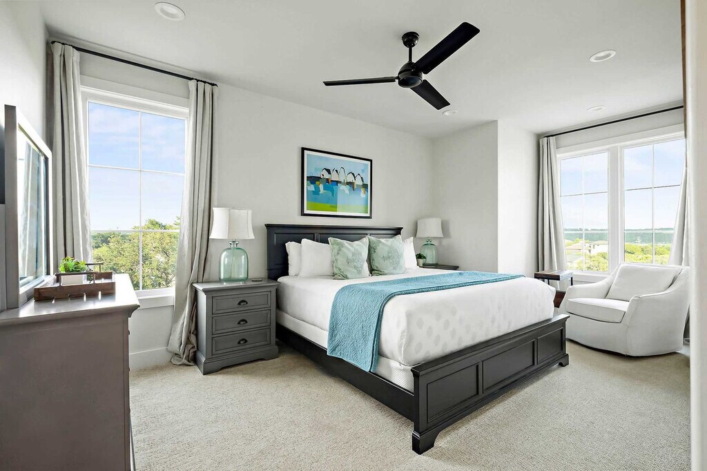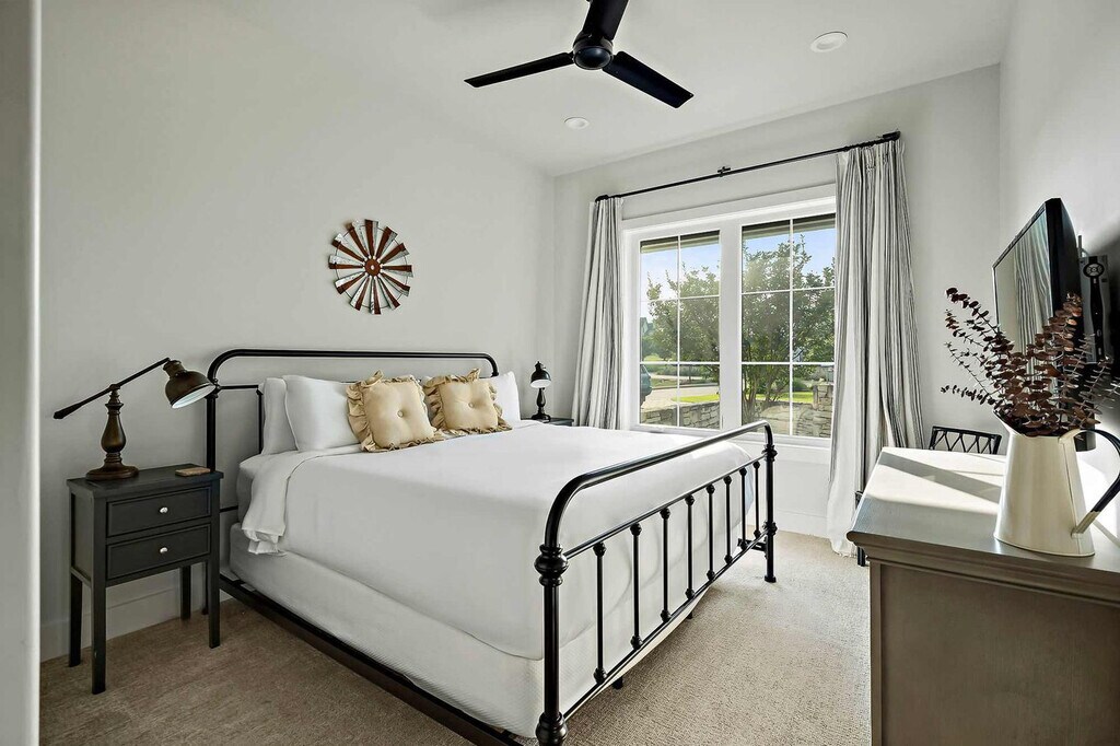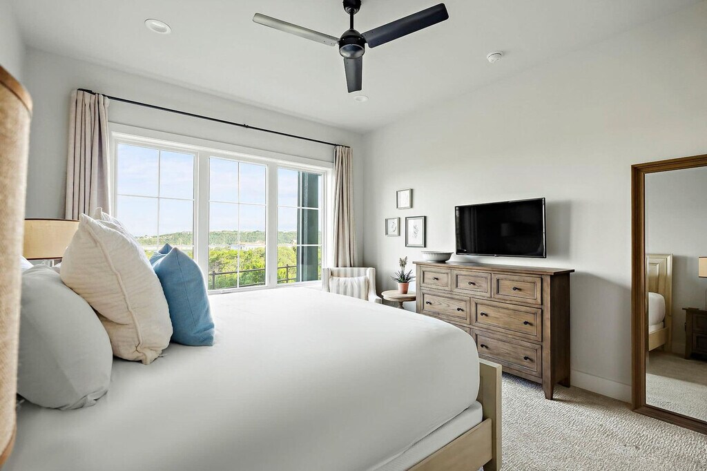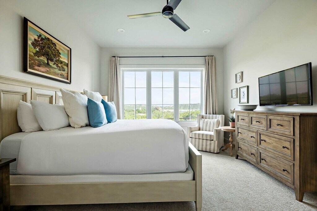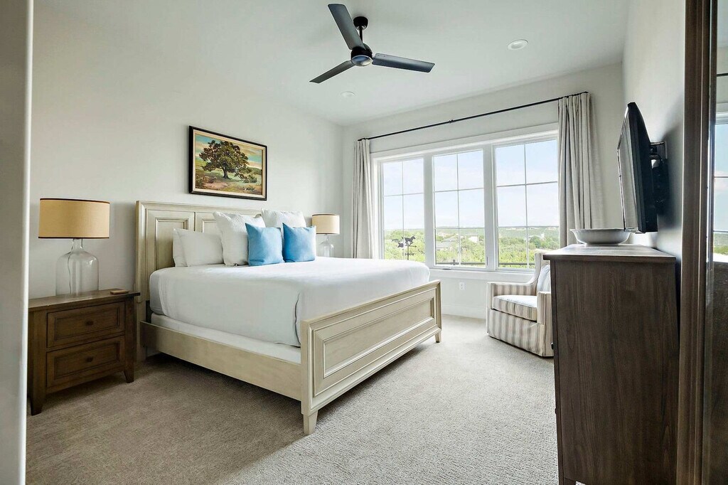 Nestled above Lake Travis, this luxury 4-bedroom retreat offers stunning views and elegant comfort. As the largest home at The Reserve, it features two living areas, a chef’s kitchen, and outdoor dining with a built-in grill. Sip coffee on the balcony or relax with a movie on one of two 65” TVs. With upscale finishes, spacious gathering areas, and parking for four, this is your perfect Hill Country escape ideal for entertaining, celebrating, or unwinding in style. Perched atop a scenic ridge, this stunning getaway offers panoramic views of Lake Travis and the Texas Hill Country. As the largest vacation rental at The Reserve and featured in Texas Lifestyle Magazine, it’s the perfect place to entertain, celebrate, and unwind in style. Part of the exclusive Farmhouse Collection, this elegant home features 4 bedrooms, a chef’s kitchen with Carrara marble accents, two cozy living areas, and a covered outdoor space complete with a built-in grill and alfresco dining area. Start your day with coffee on the upstairs covered balcony or wind down with a cocktail on the main patio outfitted with a 56” outdoor TV, dining table, and outdoor kitchen. Inside, enjoy the warm charm of wood floors, exposed beams, and natural light. The downstairs living room features a leather sofa, armchairs, and a 65” smart TV with soundbar, while the upstairs lounge offers plush recliners, a sofa, and another 65” smart TV for added relaxation. The kitchen is a culinary dream, boasting marble quartzite counters, a six-burner gas stove, island seating, and a rustic wood dining table, ideal for gathering with friends and family. Guests will also enjoy the convenience of a private garage for 2 vehicles and driveway parking for 2 more, along with high-speed Wi-Fi, cable, Netflix, and two sets of washers and dryers to make your stay as seamless as it is luxurious. Guests will also enjoy the convenience of a private garage for 2 vehicles and driveway parking for 2 more. Please note that all pool and water attractions, food and beverage areas and The Lodge are currently closed. Drought conditions may affect Lake Travis water levels may be lower than shown in listing photos. Refunds or cancellations cannot be offered based on water levels. The Reserve at Lake Travis is a private luxury community where lake life meets upscale comfort. Located just west of Austin along the sparkling south shore of Lake Travis, this exclusive retreat offers the perfect blend of tranquility, adventure, and refined living. Wake up to breathtaking views, spend your days out on the water, and wind down with a glass of wine under starry skies. With direct access to Lake Travis—a 64-mile stretch of clear, unrestricted water—you’re free to boat, swim, wakeboard, water ski, or cruise at your own pace. Even during the cooler months, the lake comes alive with sailboats gliding across calm waters. Off the lake, explore the best of Central Texas. Tee off at nearby championship golf courses, browse over 125 shops and restaurants at the Hill Country Galleria, or grab a bite at one of the area’s cozy, local diners. And when you're ready for some city energy, the vibrant music, food, and nightlife of downtown Austin are just a scenic 45-minute drive away. Whether you're here to reconnect with nature, seek adventure, or simply relax in style—The Reserve at Lake Travis is your perfect getaway. Smoking is not allowed on the premises, with a minimum smoking fee of $250. However, the total charge may be higher if the property's condition renders it temporarily unrentable. Early check-in and late check-out are possible, subject to availability and with an associated fee. A period of quiet hours spans from 10 pm to 7 am. No parties are allowed. Unauthorized events or parties are not allowed. Fireworks are not allowed. Please return the fishing rods, pickleball paddles and balls after use. Fees may apply. Please do not set the home's thermostat above 76 (heating) or below 68 (cooling). To avoid overloading the system, please adjust the thermostat by no more than 2 degrees per hour and keep the doors and windows closed as much as possible. If you encounter any issues, don’t hesitate to contact us. Texas is known for its bug inhabitants. Rest assured, we take proactive measures to manage this, and it shouldn't pose a problem during your stay. To help us keep them outside, please keep all windows and doors closed. We take proactive measures to manage this but if you are experiencing issues please feel free to use the bug spray underneath the sink. [SI]