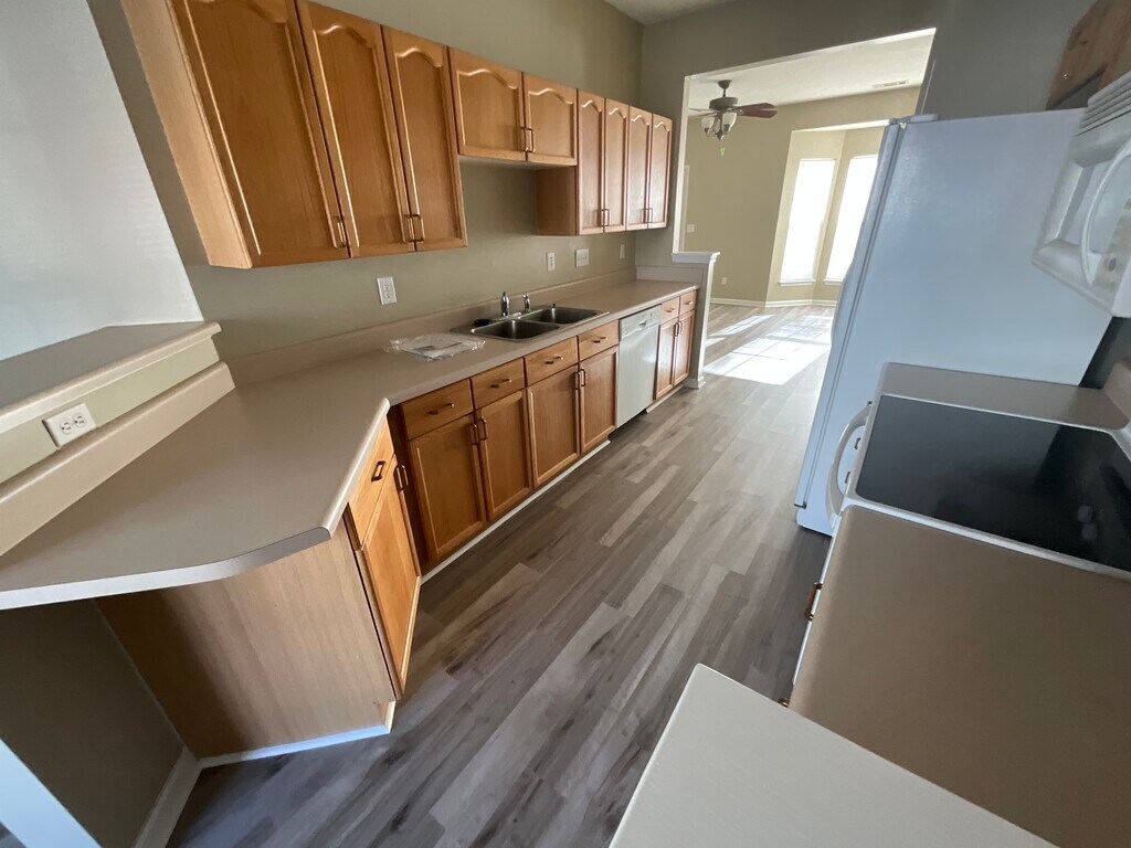 This end-unit townhome offers plenty of natural light through its many windows with blinds. The main level features a dining area,a kitchen with an eat-in bar and pantry for storage,a spacious living room,and an atrium door leading to the rear patio. A half bath and laundry are also on the main level. Upstairs,you'll find the primary bedroom with a walk-in closet and a primary bathroom with a full vanity and a soaking tub with a shower. There are two additional bedrooms and a second full bathroom on the upper floor. Water,sewer,and garbage are included,while tenants are responsible for other utilities. The HOA maintains the exterior lawn and landscaping. Two parking spaces are available,with one designated spot. No smoking is allowed,no cats,and dogs under 35 pounds at adult weight are permitted per HOA rules with a pet fee.