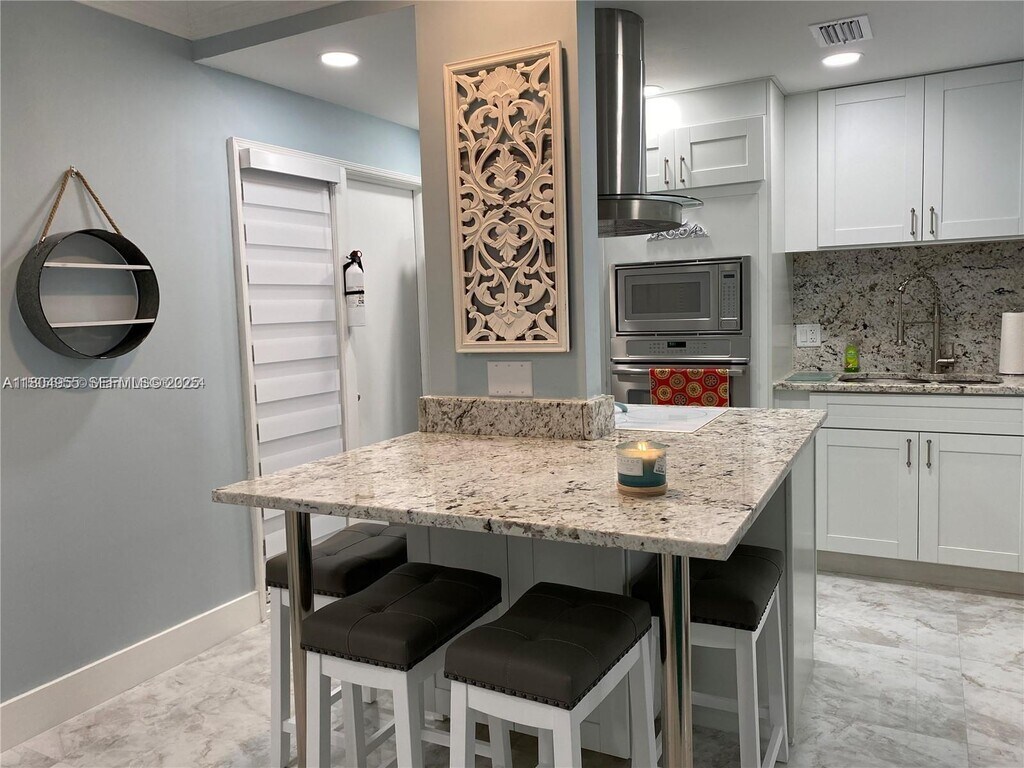 Luxurious Beach Getaway... Fully furnished & remodeled, this unit evokes a sense of COZY-RELAXATION. Walking in, the floor plan opens to the living and kitchen area with modern and upscale décor and furnishings + 2 TV's. Kitchen is outfitted with SS appliances, granite counter-tops, shaker style cabinets, and stocked with dishware, silverware, cookware.... Porcelain floors flow throughout the flat in all rooms. Heated pool. Take a short walk to the beach; public access near. Also, a short walk to local dining, shopping and parks. The unit includes 1 assigned parking space, guest parking and laundry facility within the building. --NO BALCONY in UNIT-- SHORT TERM (ADD $200/month + tax): Includes water, trash, electric, wifi. LONG TERM: Includes water, trash
