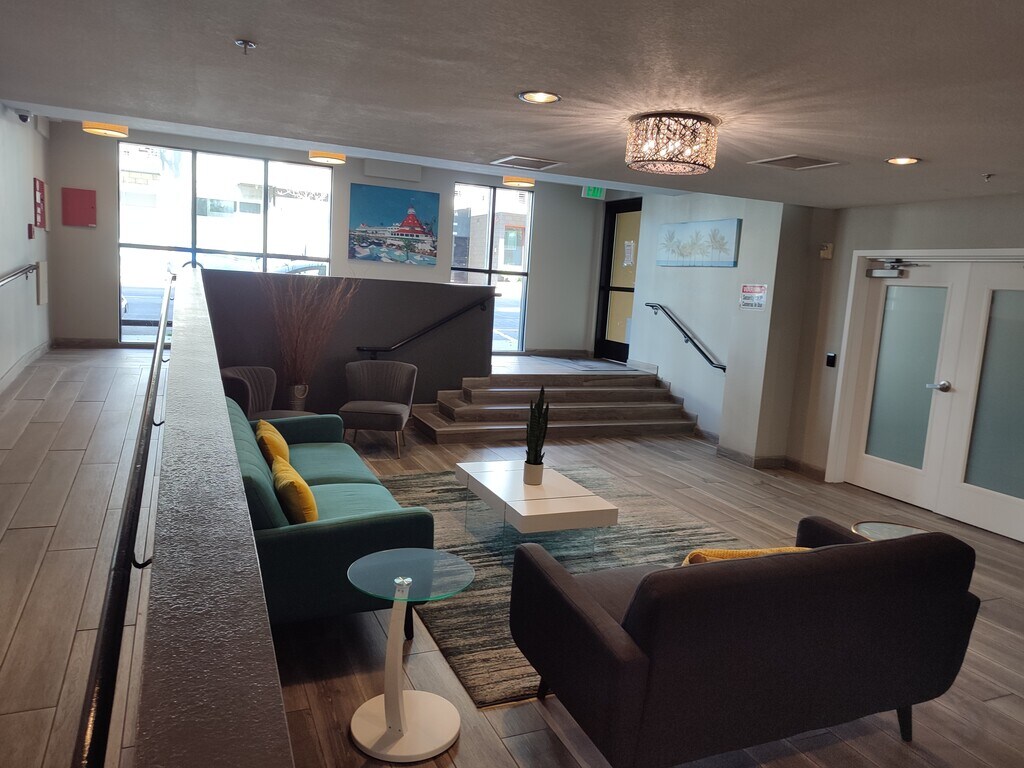 The best location Little Italy has to offer. Corner of Grape and Columbia, walking distance to restaurants, pubs, bars, and farmers market, Gas Lamp, Harbor District, Seaport Village, public transportation, parks, and easy access to freeways. Travertine bath and porcelain tile floor throughout unit(wood look). AC/Heat, Samsung front loader washer/dryer in unit, dishwasher, large fridge, stove with electric cook-top and microwave. Unit is on top floor (no one above you). Harbor views from bedroom window and sliding door. Courtyard has two BBQ's and outdoor seating (see photos). Gym downstairs and secured mail-room. Property is very well maintained and is very quiet with little foot traffic. Rent is $3100/month. Electricity is tenant's responsibility. Internet included. Deposit $2000, but can be lower depending on credit score / financial standing. Good credit score is required. No pets allowed at this time. Unit can be rented for 1 month minimum to 12 months or more. Parking included. Internet / Cable Included. Contact me if interested or if you have any additional questions.