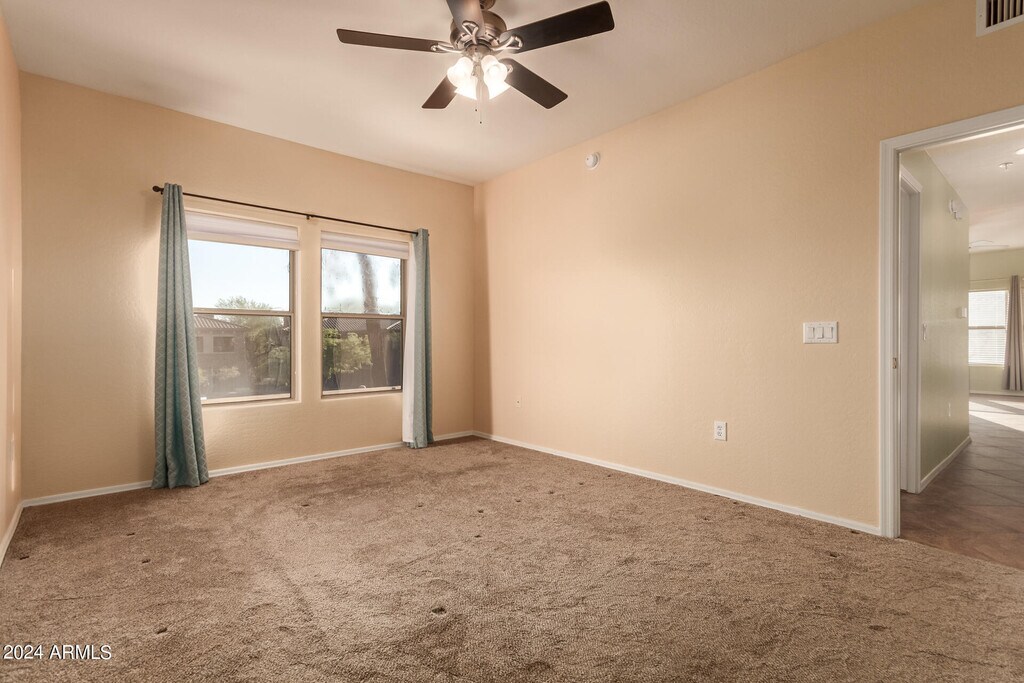 Fantastic rental opportunity! Discover this lovely apartment unit in the Village at Grayhawk! You'll be delighted by the inviting living/dining room with high ceilings,a fresh palette,blinds for added privacy,and durable tile flooring. The spotless kitchen comes with ample white cabinetry with crown molding,recessed lighting,essential built-in appliances,a pantry,and a two-tier island with a breakfast bar for casual dining. The primary bedroom boasts soft carpeting,a walk-in closet,and an ensuite with double sinks. Enjoy quiet outdoor moments on the balcony,offering serene views of the surrounding neighborhood. Don't miss out on this incredible opportunity!